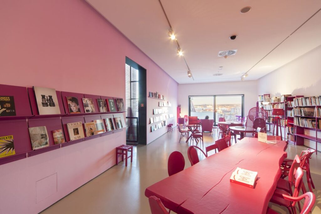 En 2014 nace LECTO de la mano del diseñador burgalés Ricardo Páramo, quien planteó para este espacio mesas y sillas diferentes entre sí, a las que dotaba de un carácter unificador gracias a un color rosa fucsia que lo impregnaba todo y que con el paso del tiempo se ha convertido en seña de identidad del CAB.