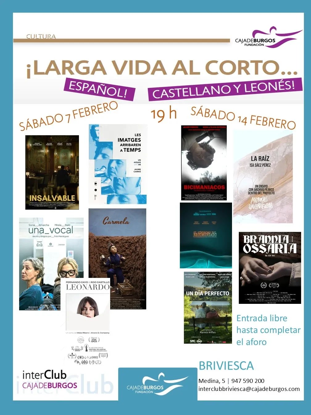 Un año más, la Fundación Caja de Burgos acerca a nuestros Interclubes una selección de cortometrajes destacados, con historias emocionantes, creativas y llenas de talento.