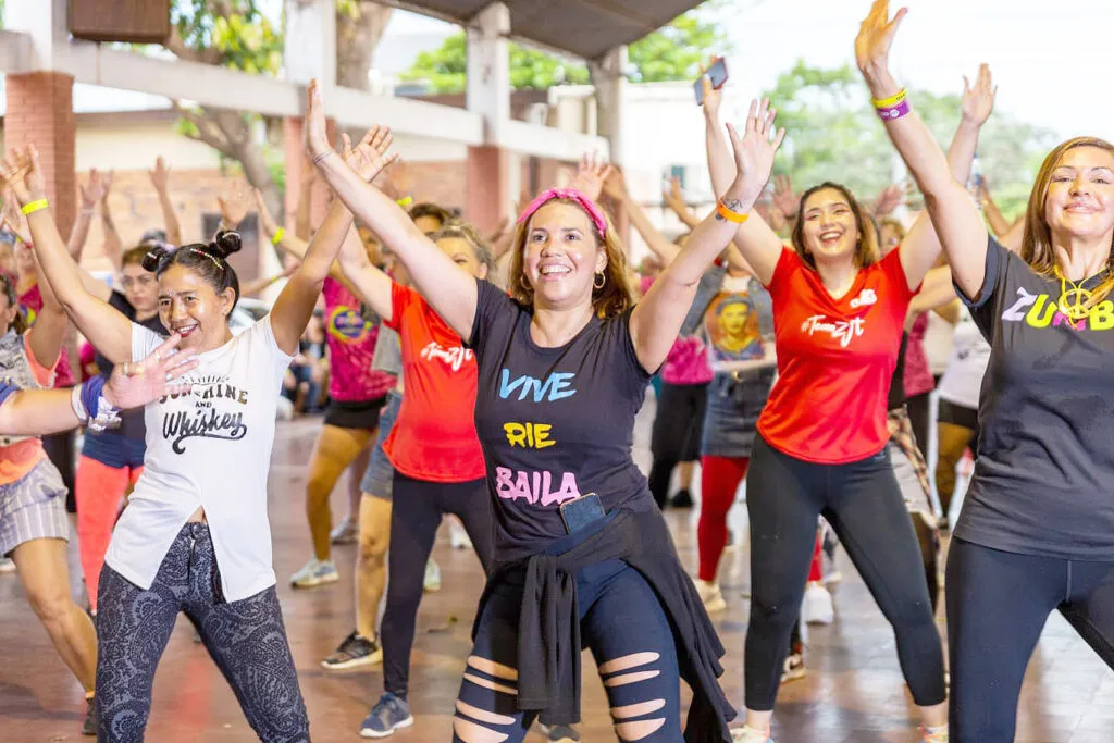 El movimiento, la música y el ritmo construyen un ambiente cercano y dinámico, donde la actividad física y la expresión artística se dan la mano.