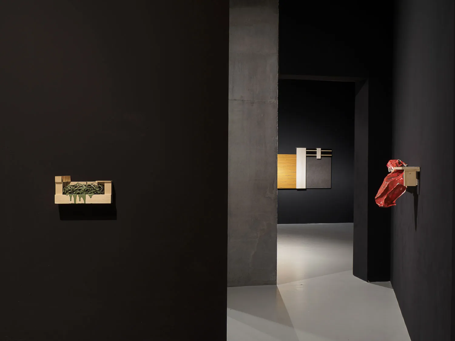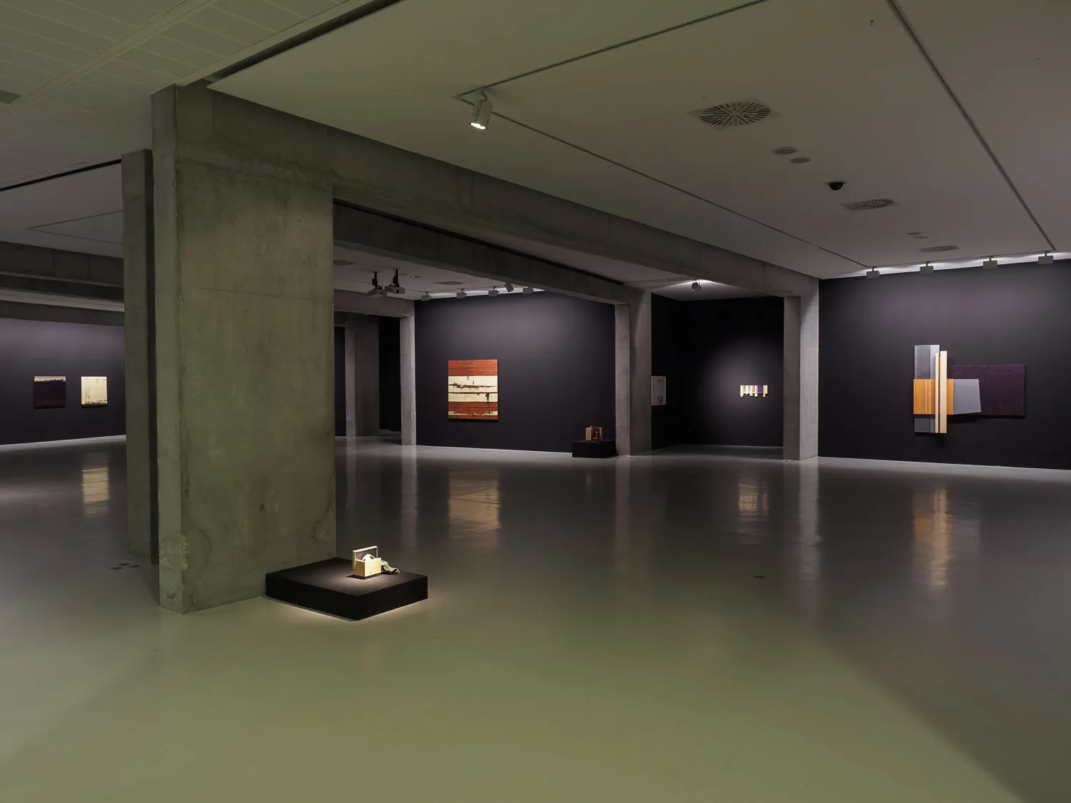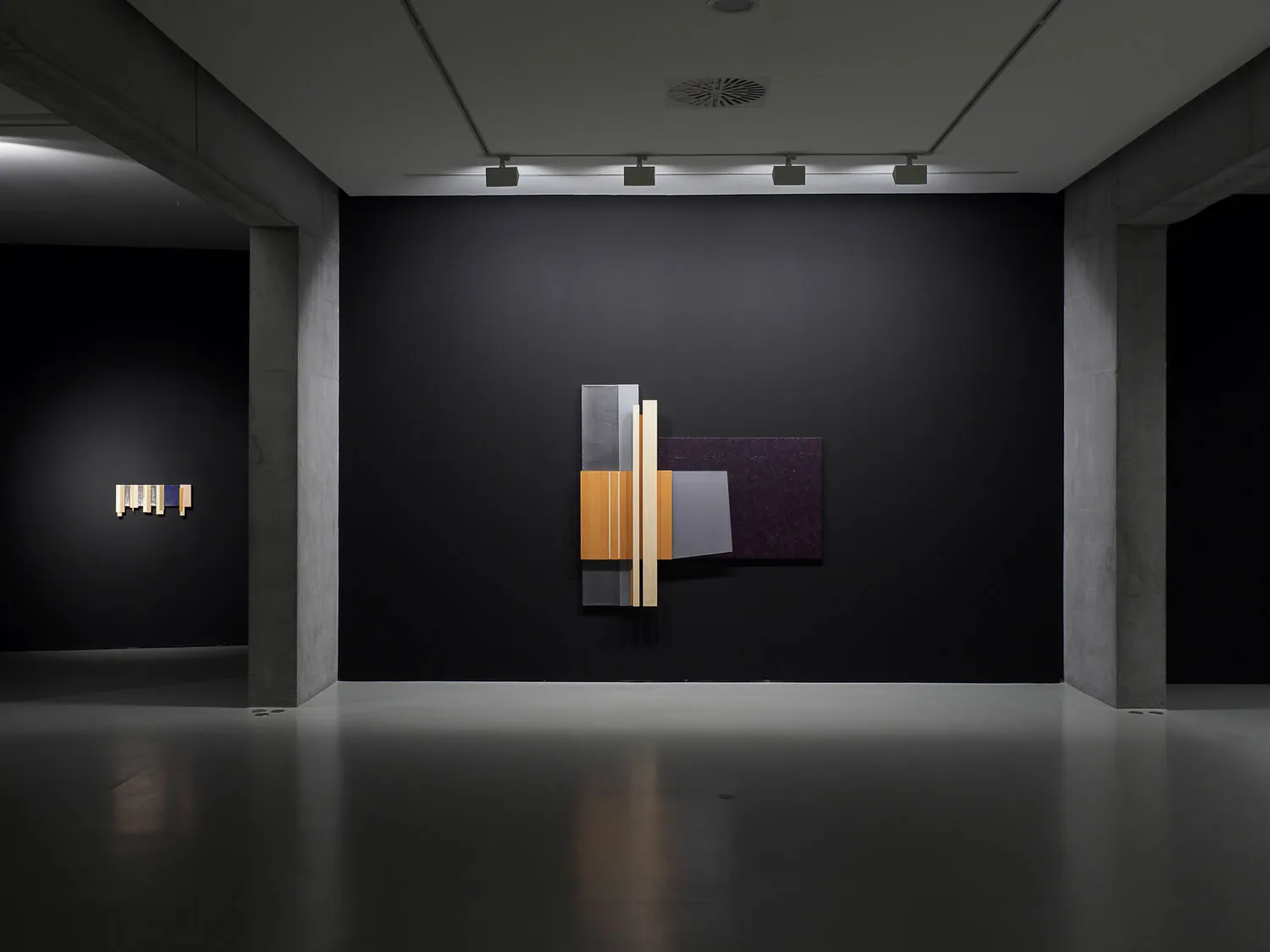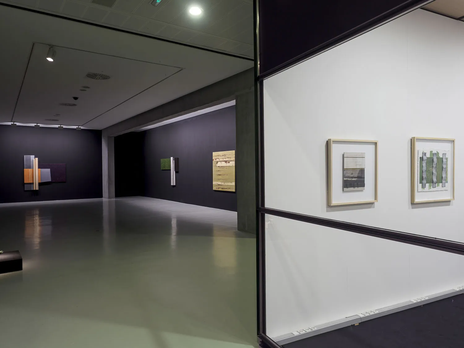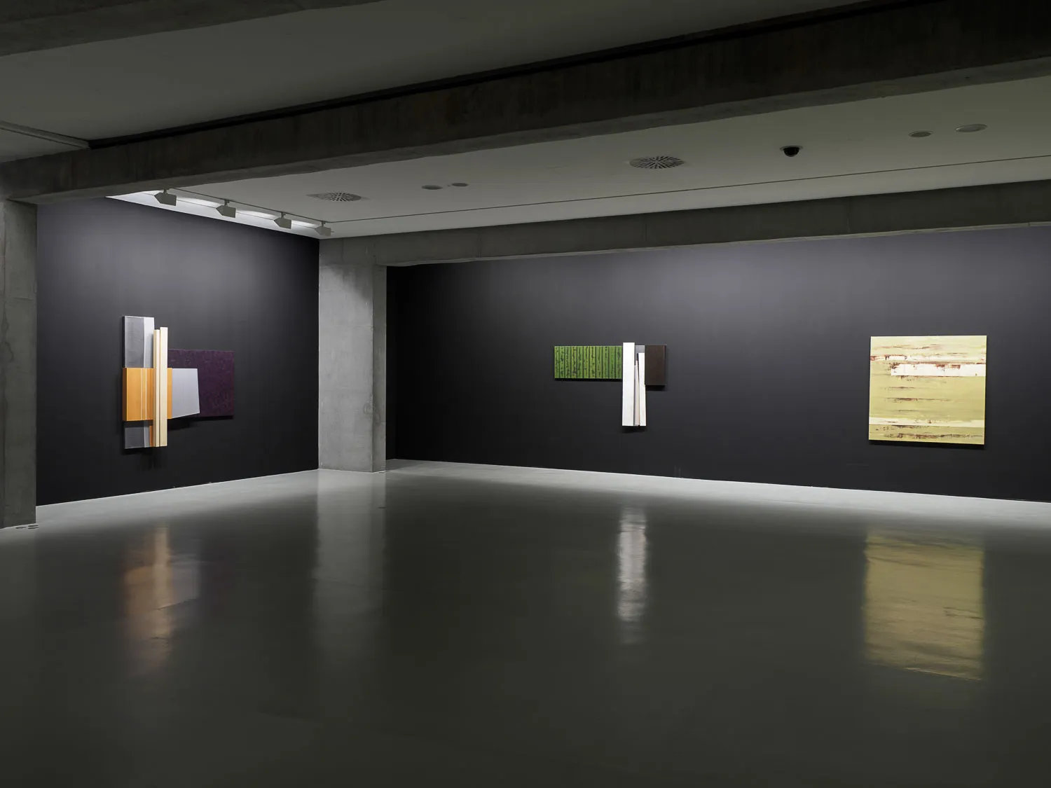 Pinturas construidas, podrían llamarse, en las que el óleo se aplica sobre el lienzo componiendo campos de color interrumpidos por bandas y retículas sobrepuestas. El formato convencional del cuadro crece con la adición de nuevos elementos corpóreos, pero con la misma significación pictórica: superficies neutras ahora, menos gestuales, casi planas para, paradójicamente, acentuar la sensación de volumen.