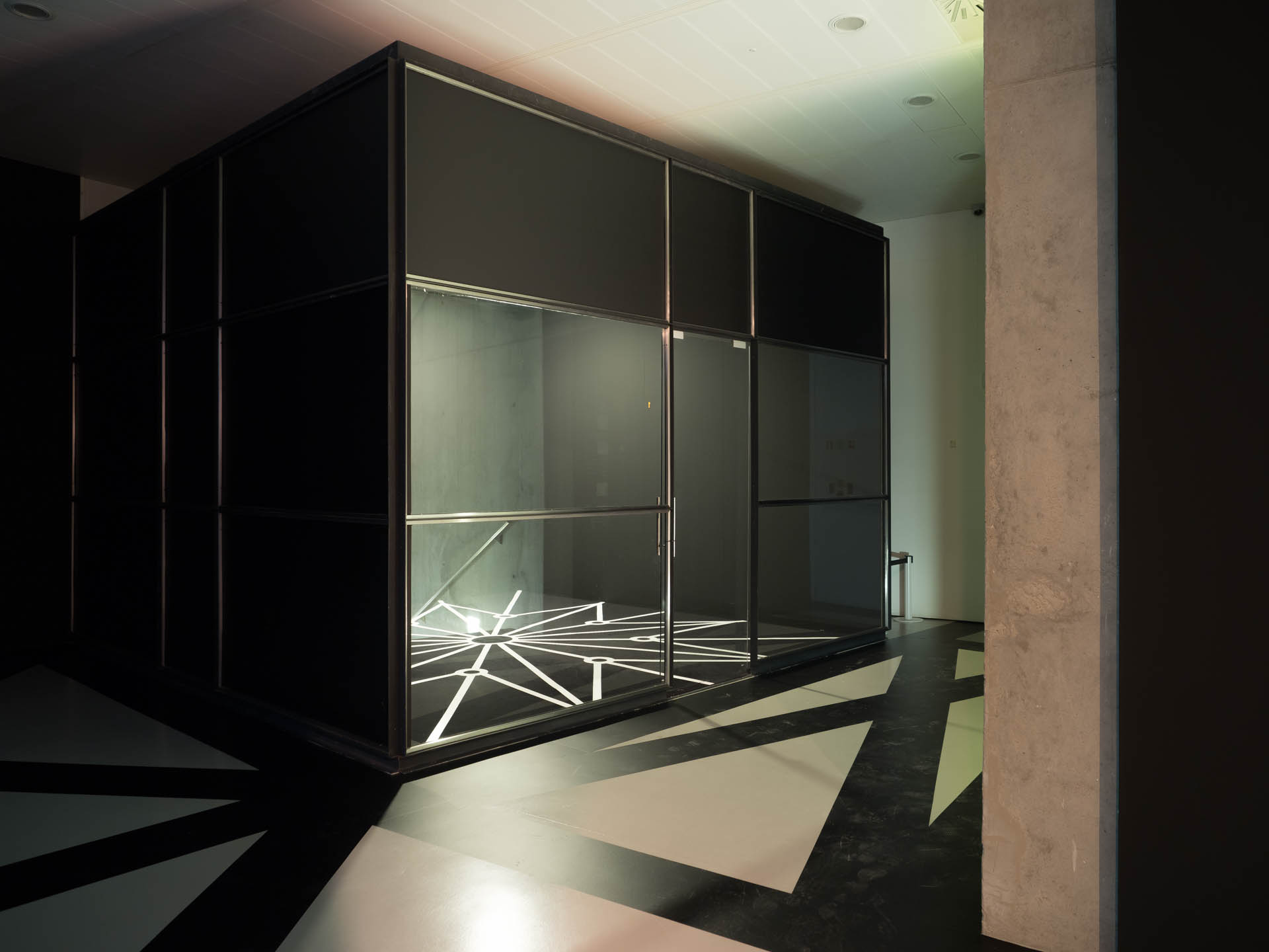 Precisamente aquello que habitualmente se oculta es ahora lo que protagoniza tanto la sala como la exposición. Una austeridad falsa, expectante, que desea ser completada y cuya desamparada presencia desasosiega al espectador más que si se hubiera dispuesto cualquier elemento en busca de perturbación.