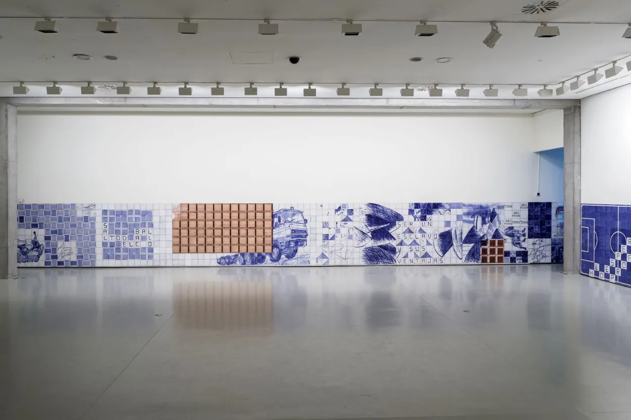 Ahora en el Centro de Arte Caja de Burgos CAB Renes presenta la más radical de las propuestas realizadas por el artista hasta el momento. Un zócalo completo situado hasta la imaginaria línea que delimita tradicionalmente la altura de los ojos. Un horizonte vacío bajo el cual se instala un interminable mosaico que circunda por completo el perímetro de la sala. Dibujados casi en exclusiva con dos pigmentos (el óxido de cobalto y el óxido de manganeso) a los que alude de manera lúdica el título de Chocobalto, los miles de azulejos que ha trazado, cocido e instalado crean una envoltura brillante, un alicatado de aspecto solvente, en la que Renes invierte la función tradicional de este recubrimiento y lo transmuta en un mural de enorme fuerza plástica. El artista ha querido también que el público, teórico espectador de la exposición, fuera parte activa del proceso en una de sus fases germinales desarrollada en el propio centro y que, el resultado, se incorporara a la obra final.