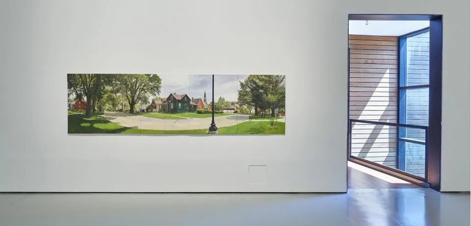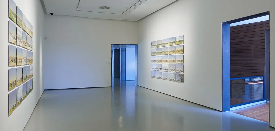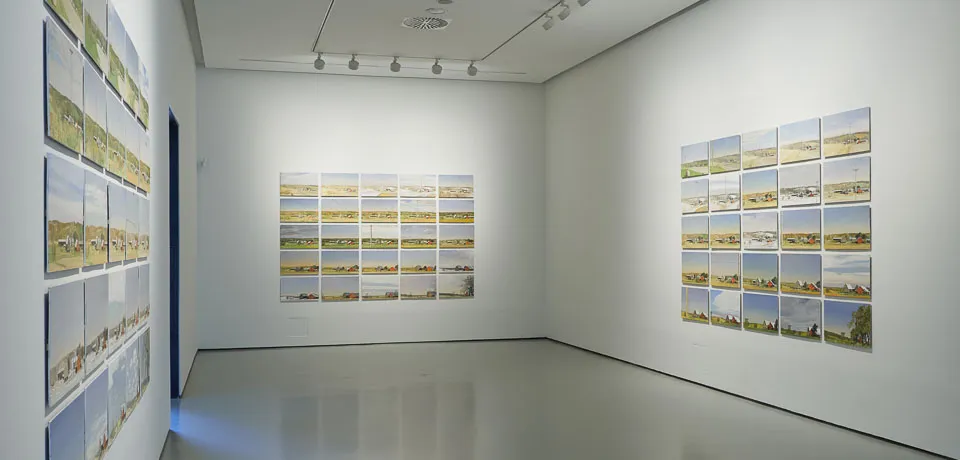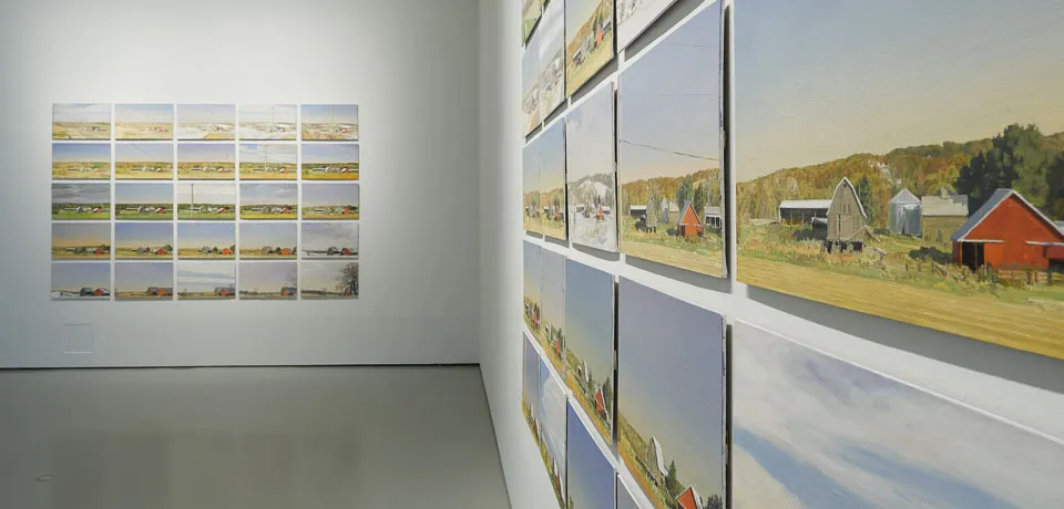La secuencia de obras que presenta se inicia con una de sus icónicas series americanas. La regla del 25, Una granja en Prairie du Chien Road (por la mañana, al mediodía y por tarde) consta de setenta y cinco pinturas. El título hace referencia al número de pinturas que componen cada uno de los momentos en los que articula el conjunto, pero además refieren las variaciones de la distancia entre los distintos cuadros que recogen el tema central elegido.
