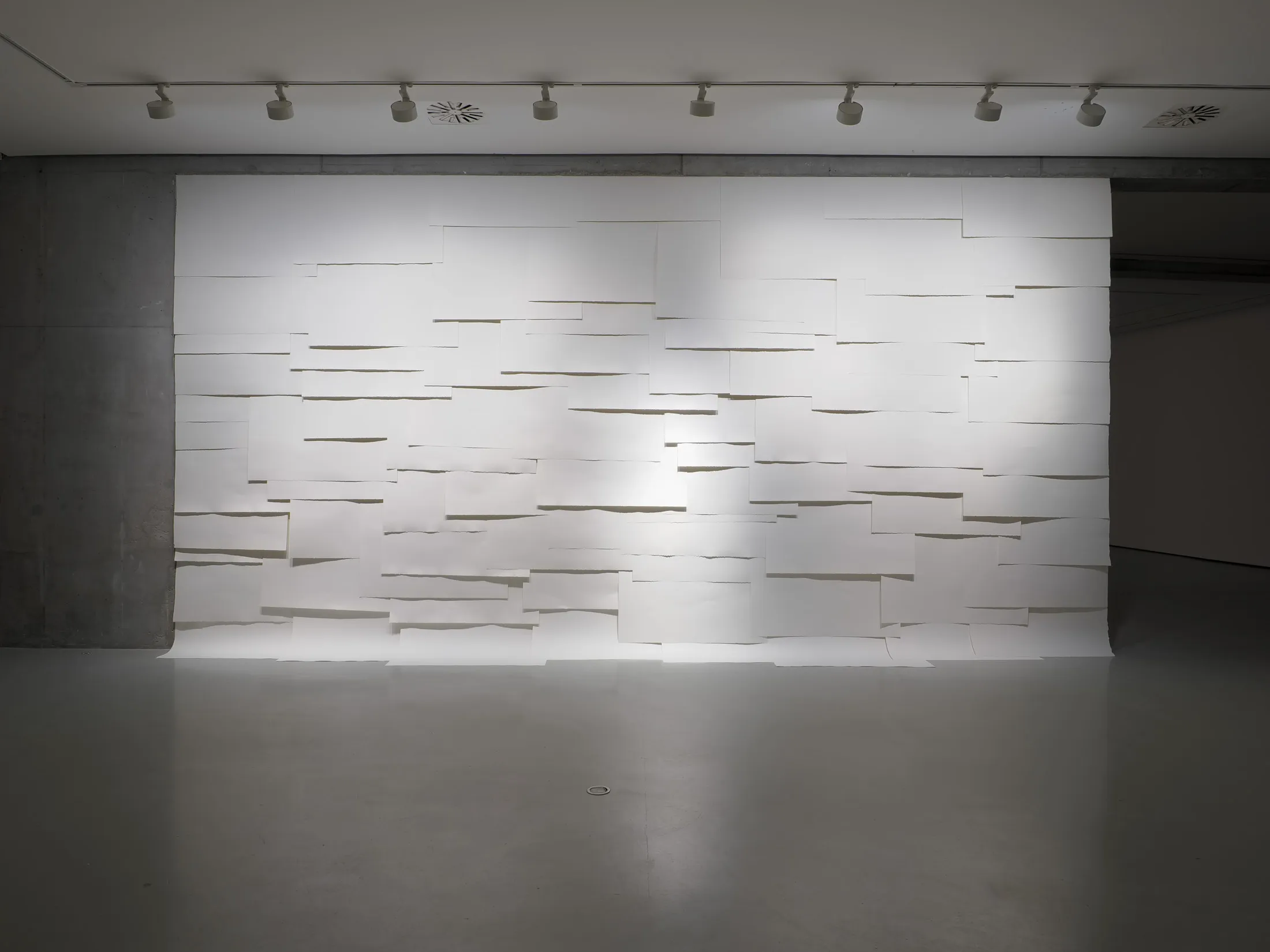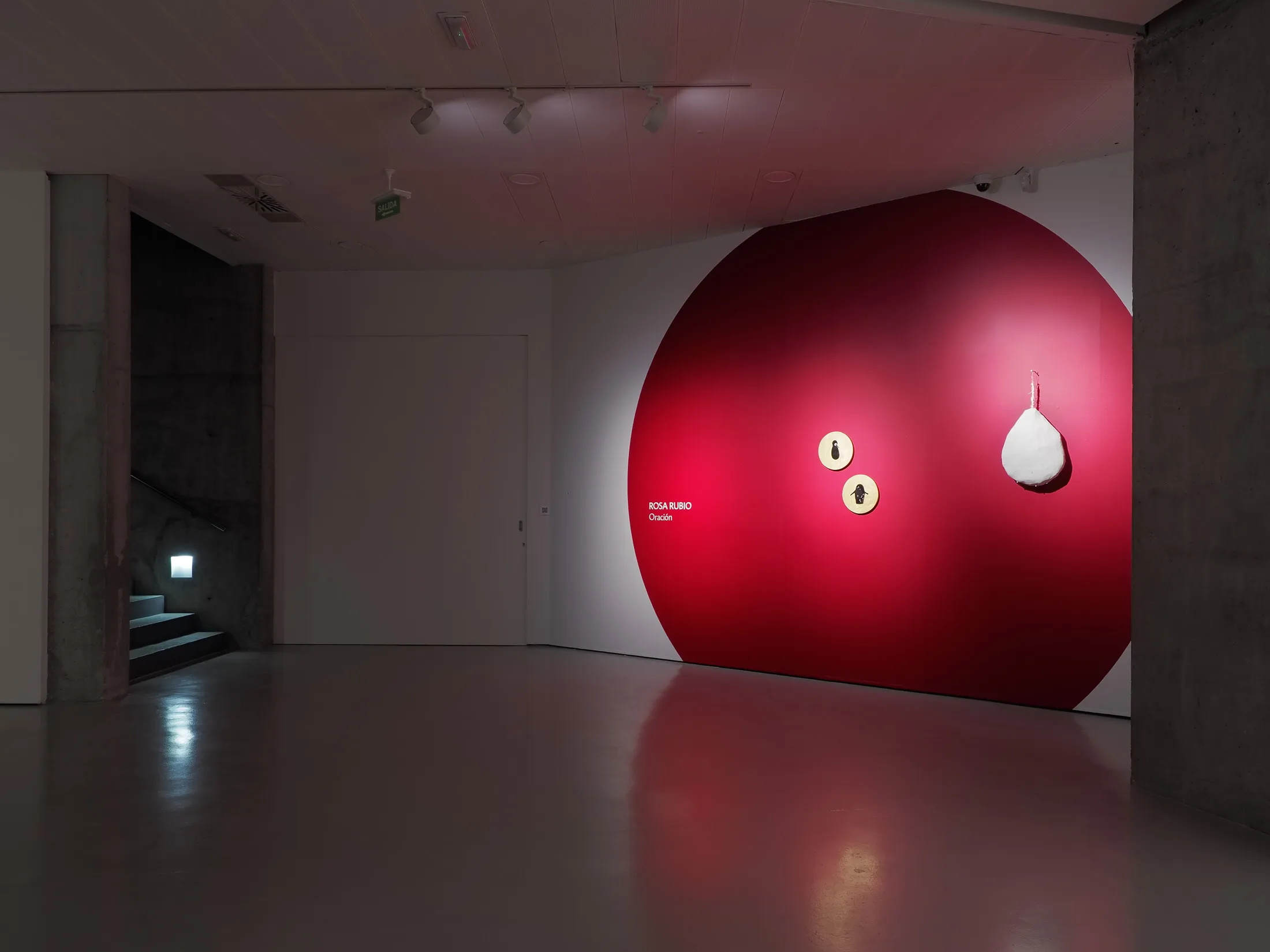 La propuesta parte de tres elementos centrales que coadyuvan el resto. El primero de ellos es una instalación mural resuelta con papel, un escamado disforme, una piel rasgada destinada a contener la oralidad del espectador, un contenedor de todo lo no escrito, incluso de lo no verbalizado y lo solo intuido. Un nuevo muro de lamentos en el que el papel sustituye a la piedra y en el que la emoción y el sentimiento se anteponen al dolor. El segundo componente actúa como recipiente mágico, como un aislado tabernáculo donde una serie de figurillas alcanzan el estatus de exvoto. El tercer puntal del proyecto viene determinado por Dualidad, una gran proyección videográfica que relaciona todo el universo plástico desplegado por Rosa Rubio: la omnipresencia, el muro de plegaria y la imaginería votiva generan una atmósfera inquietante y oscura que contrasta con la superficie pura y blanca en la que se desarrolla.