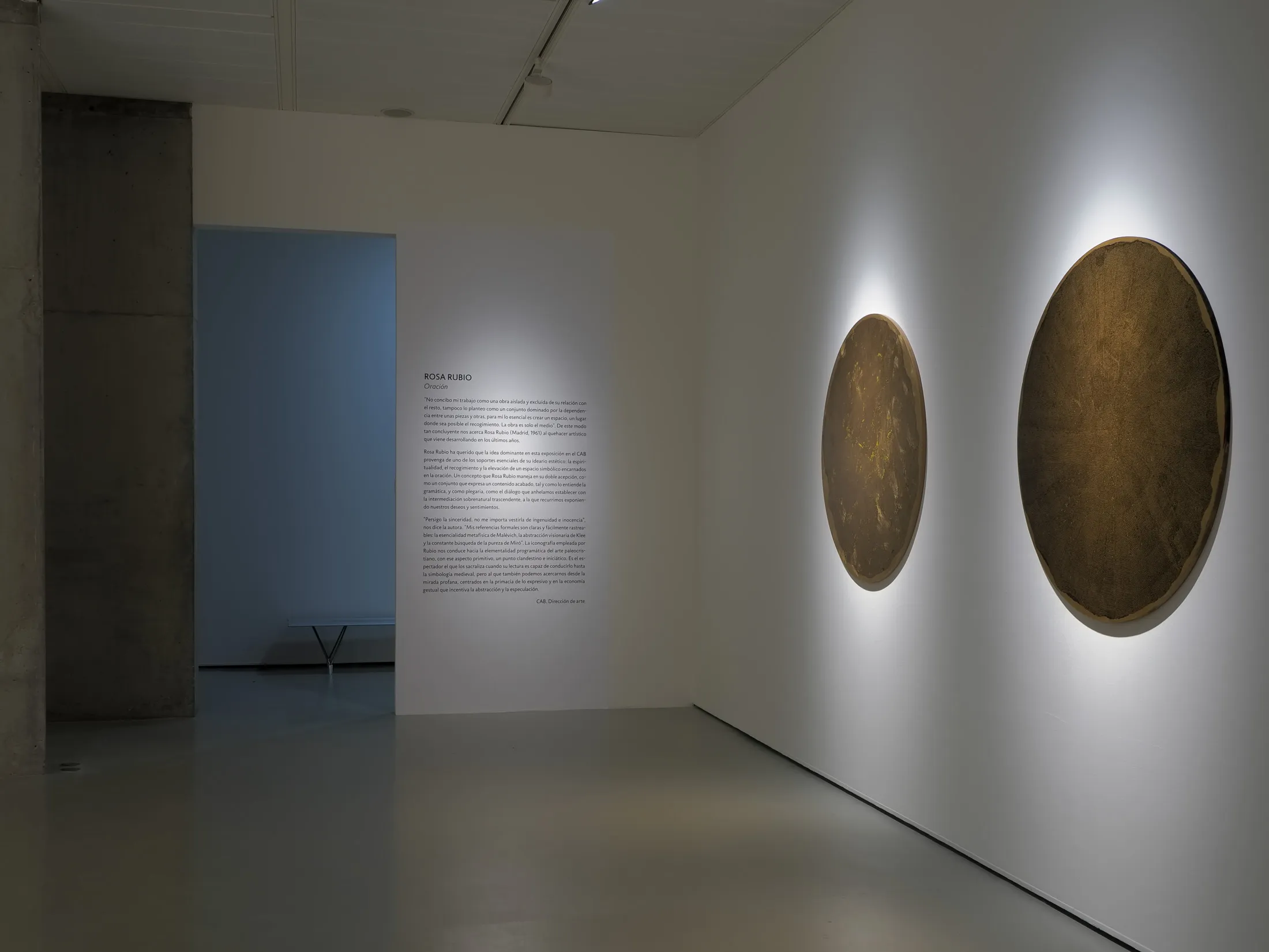 Rosa Rubio (Madrid, 1961) ha querido que la idea dominante en esta exposición en el CAB provenga de uno de los soportes esenciales de su ideario estético: la espiritualidad, el recogimiento y la erección de un espacio simbólico encarnados en la oración. Un concepto que maneja en su doble acepción, como un conjunto que expresa un contenido acabado, tal y como lo entiende la gramática, y como plegaria, como el dialogo que anhelamos establecer con la intermediación sobrenatural trascendente. Como en toda oración, Rubio otorga al contexto un valor principal en el que los signos, los códigos, la estructura interna y los diferentes valores semánticos resultan determinantes. Por ello, reclama del espectador la quietud necesaria, para detenerse y profundizar en cada uno de los detalles que han conformado la estancia contemplativa creada para el CAB.