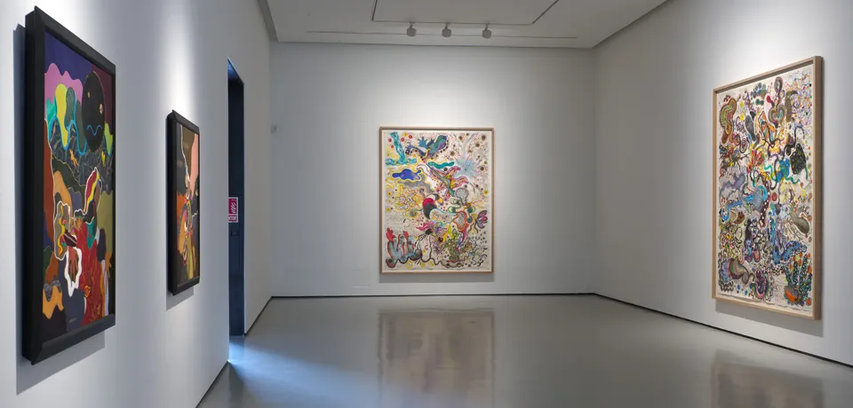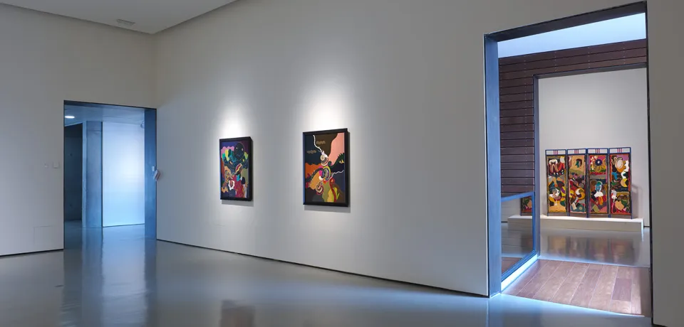 Resuelta en tres estadios, la exposición de Hammer en el CAB contiene algunos de los elementos que han dado celebridad a su trabajo y que sucintamente enumeramos. Los grandes biombos de piel muestran su lado más narrativo y complejo; los dibujos, que en rigor conforman enormes pinturas sobre papel, nos acercan a otra de las preocupaciones formales de Hammer: su interés y cercanía a las culturales orientales, en las que explora insólitas semejanzas con la tradición judía. Por último, una de las significativas aportaciones de Hammer a esta exposición la constituye la cerámica. Un territorio de experimentación que parece haberse desgajado, fértil y festivo, del corsé de la representación bidimensional. Como en esas gorgonias y corales que asombraban en los escaparates y jugueteros de las catedrales y monasterios, las cerámicas de Jonathan Hammer nos sumergen en un mundo desconocido, fascinante y jubiloso.