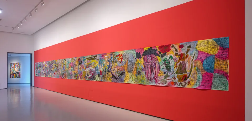 “La dislexia tiene su lado positivo —nos dice Jonathan Hammer (Chicago, 1960)—. La dificultad para descodificar el lenguaje y las palabras puede dar paso al original proceso de codificar elípticamente las imágenes visuales y reordenar las ideas”. La obra de Jonathan Hammer utiliza precisamente esas estrategias en un universo jaspeado desde el que ahondar en la historia, la sociología, la identidad sexual, la poesía y el ocultismo. Los temas se superponen y entrelazan, se fuerzan y retuercen para que ofrezcan una panoplia de lecturas posibles y no se limiten a la inicial investigación elaborada por el artista. El conjunto de obras expuestas en el CAB enlaza hilos esparcidos y divergentes que se retuercen en una única veta artística atravesada por la pintura, el dibujo, la cerámica y la marquetería de pieles exóticas.