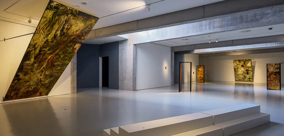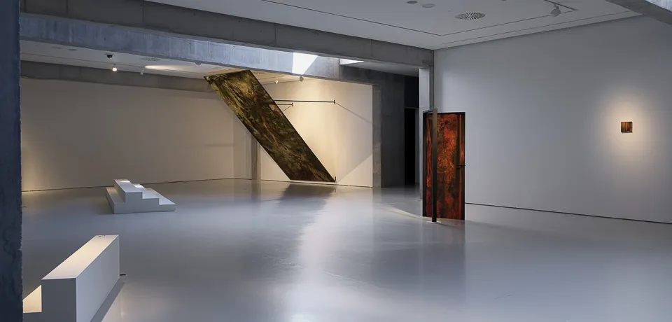 El proyecto explora el paisaje como construcción cultural: un campo de fricciones donde lo verosímil, lo emocional y lo simbólico coexisten. Las imágenes no describen un lugar; interrogan por las condiciones que nos permiten imaginarlo o apropiárnoslo. En el CAB, sus obras adquieren una dimensión arquitectónica decisiva. Desplegadas como muros, pasajes o fragmentos de un edificio imaginario, transforman la sala en un recorrido que exige una posición activa del espectador.