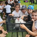 Después de la comida tuvimos tiempo para ver y acariciar a unos peludos amigos: los conejos .