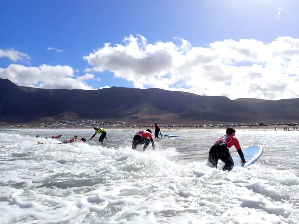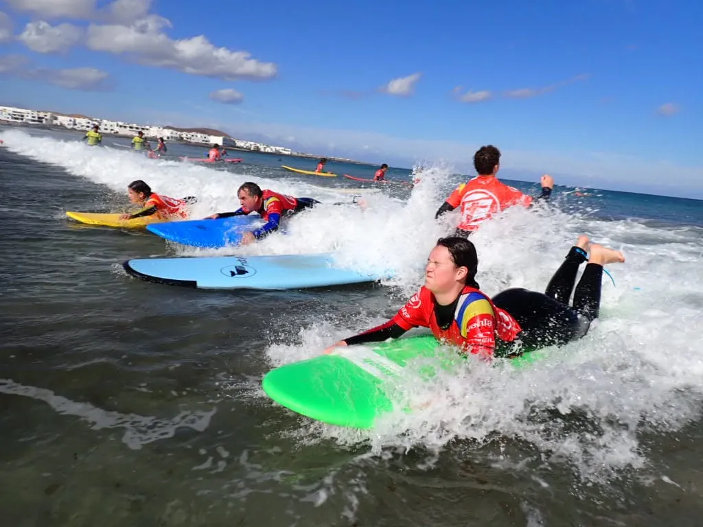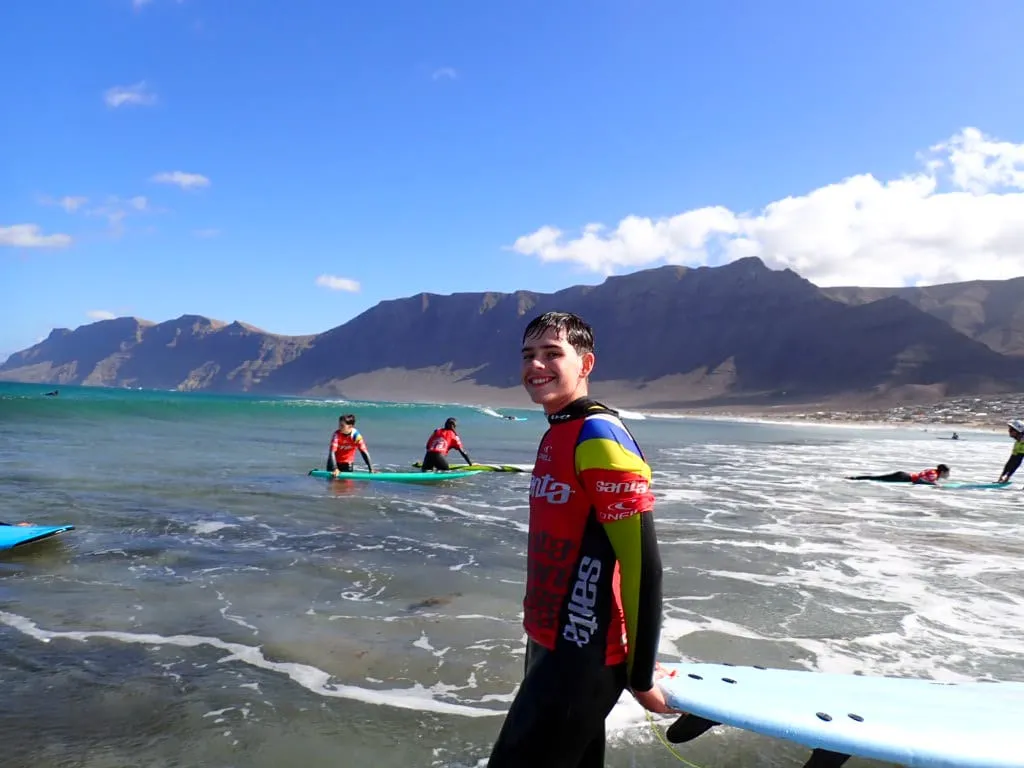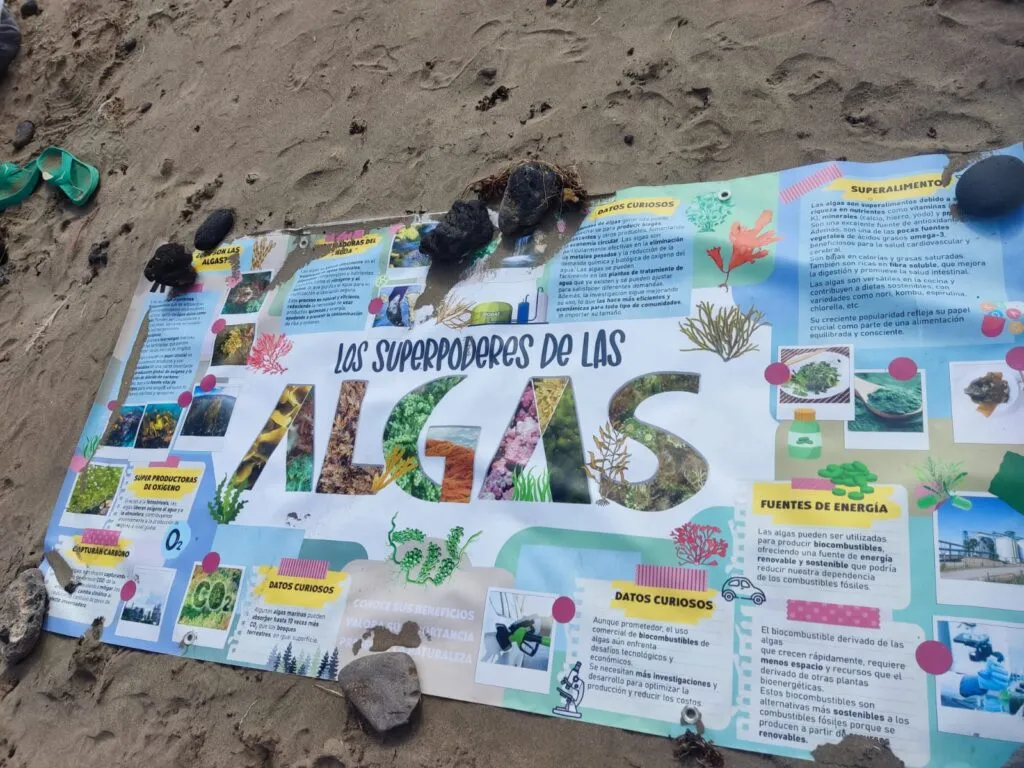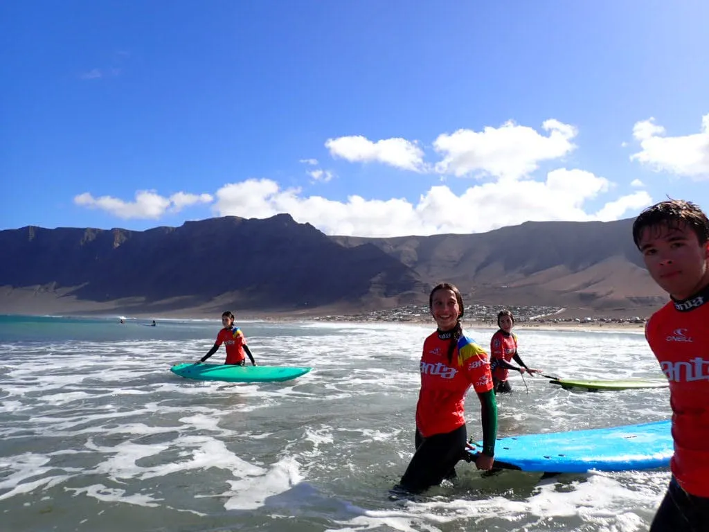 Día 12 de noviembre. Lanzarote Erasmus AGE. Comenzamos la jornada con buen tiempo en la playa de Famara. Clase práctica de iniciación al surf en una zona idílica de Lanzarote. Después del almuerzo nos explican la diversidad de la flora marina autóctona y de la importancia de las algas para la vida. Una bióloga nos enseña el efecto de los micro plásticos y donde los podemos encontrar sin verlos.