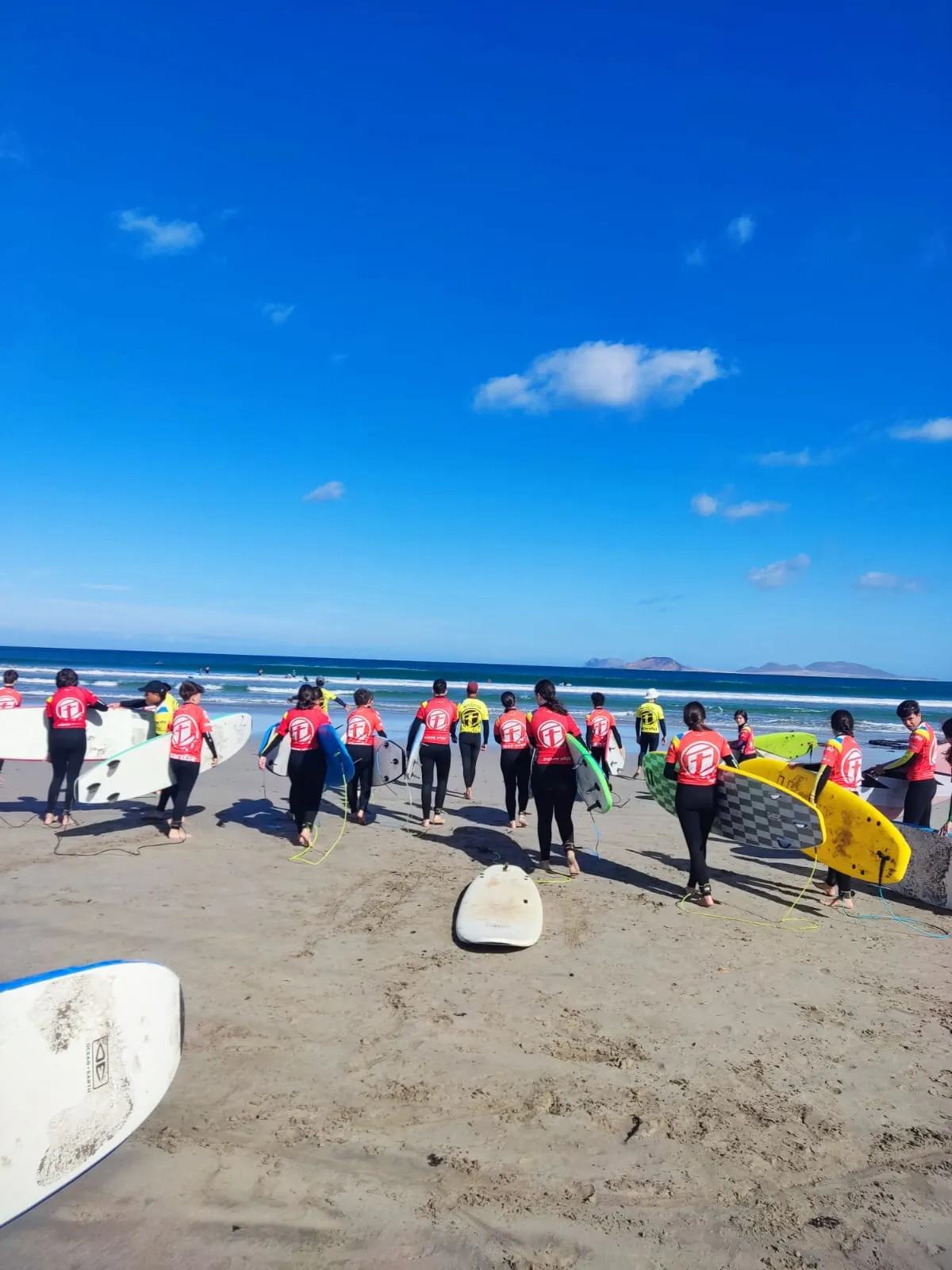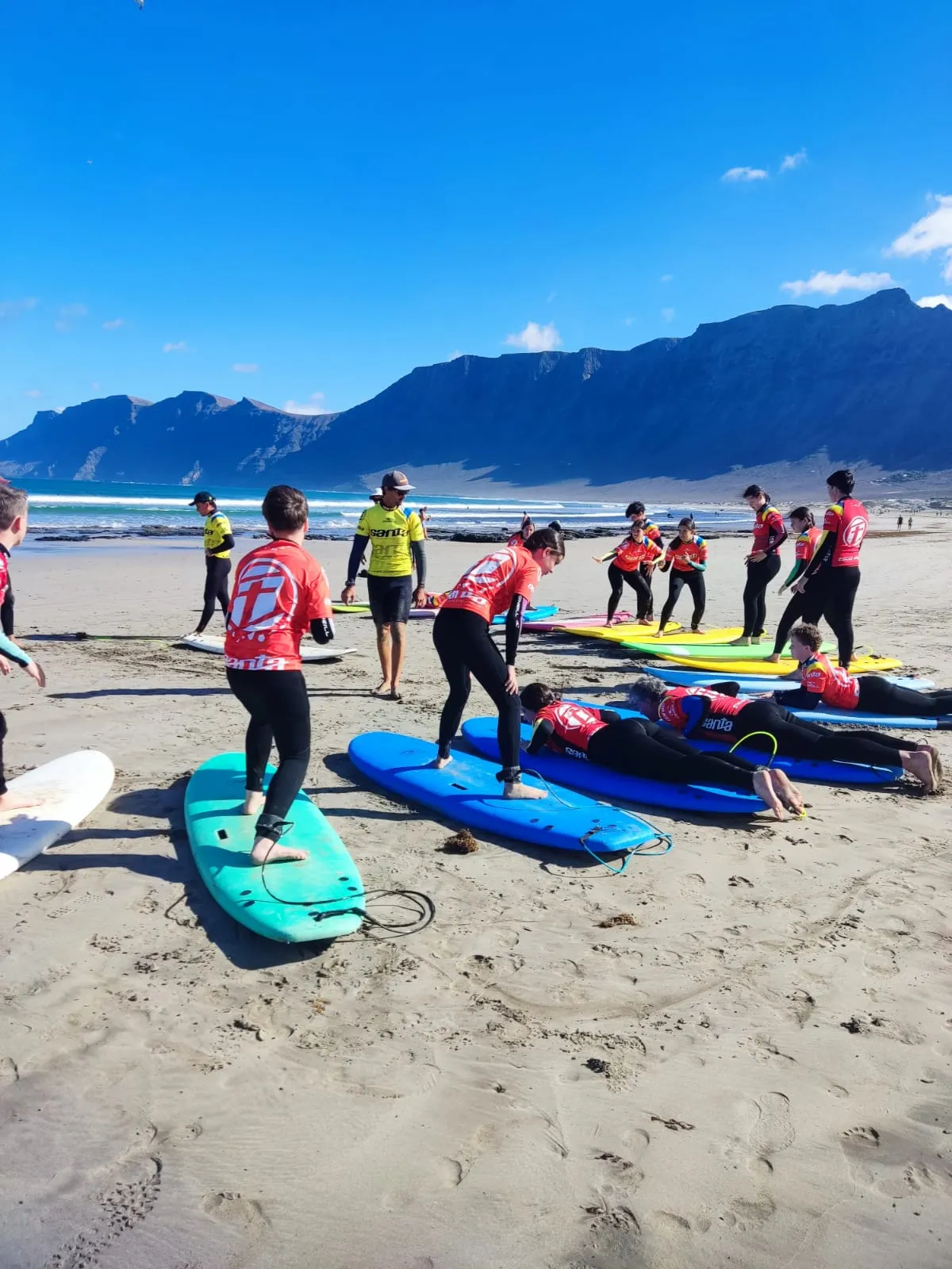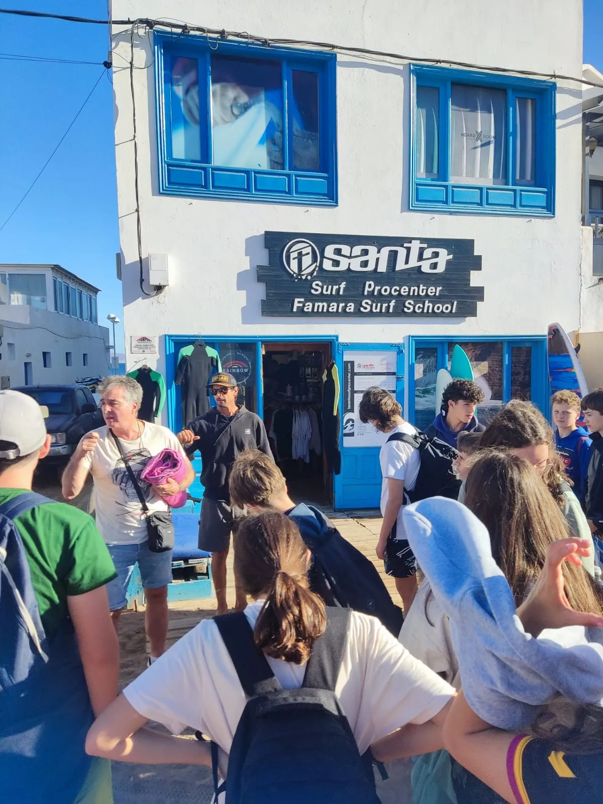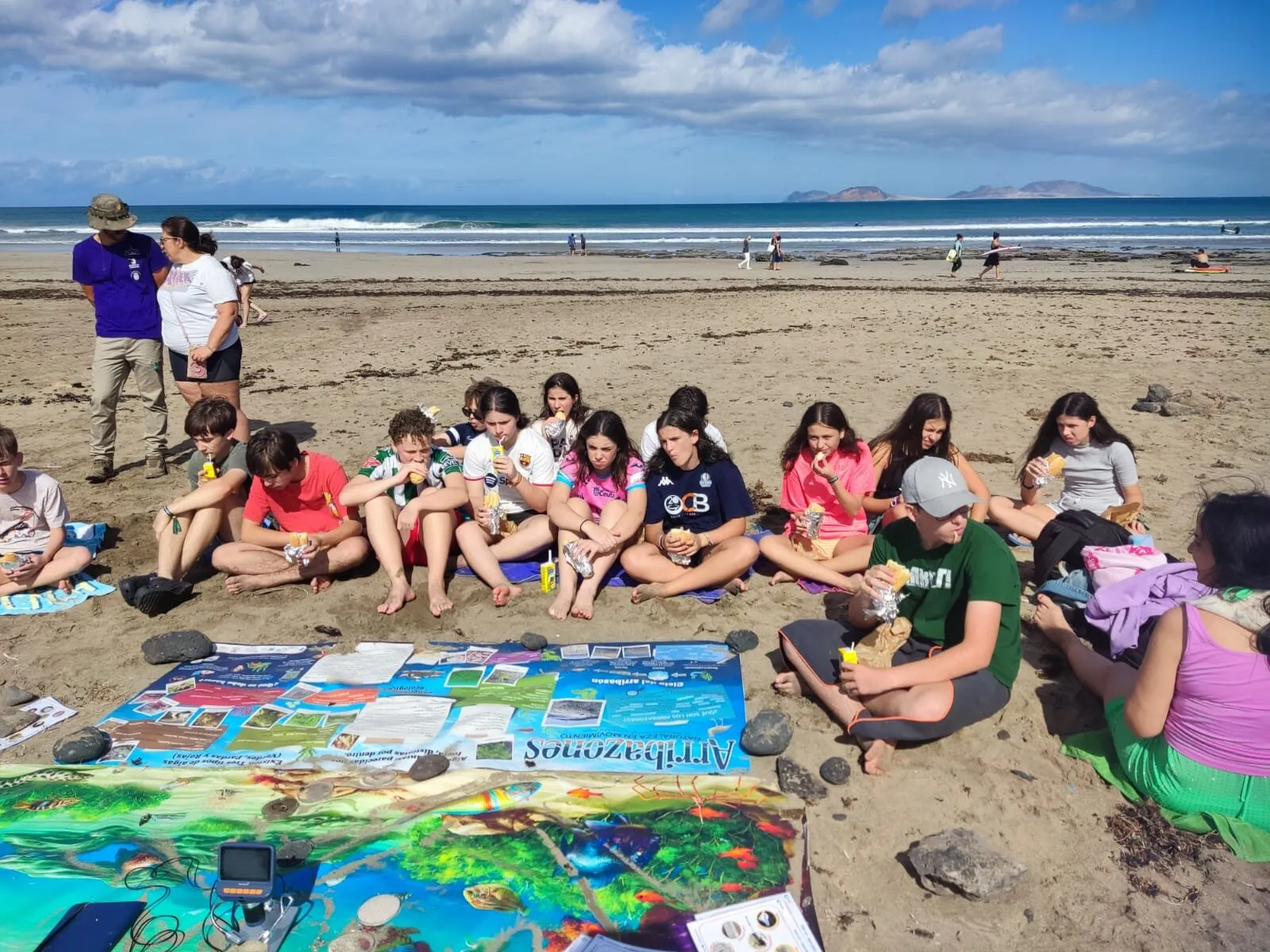 Día 12 de noviembre. Lanzarote Erasmus AGE. Comenzamos la jornada con buen tiempo en la playa de Famara. Clase práctica de iniciación al surf en una zona idílica de Lanzarote. Después del almuerzo nos explican la diversidad de la flora marina autóctona y de la importancia de las algas para la vida. Una bióloga nos enseña el efecto de los micro plásticos y donde los podemos encontrar sin verlos.