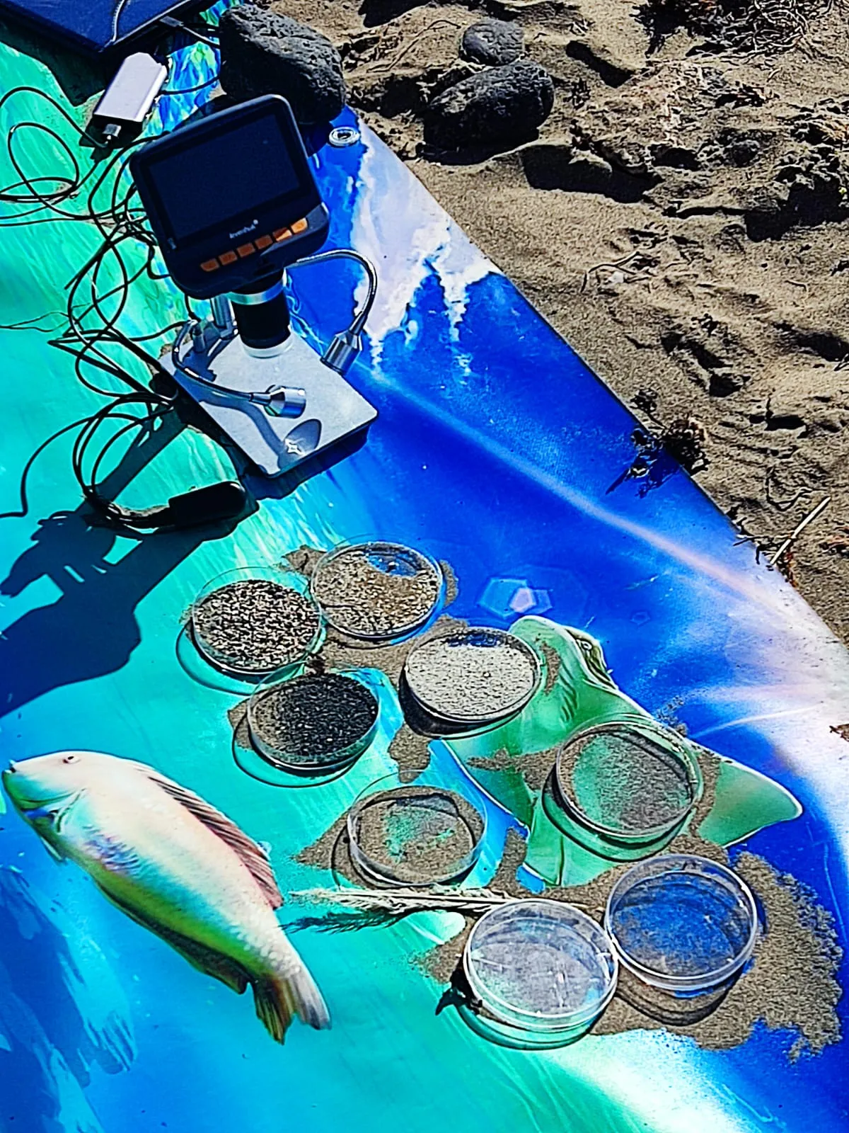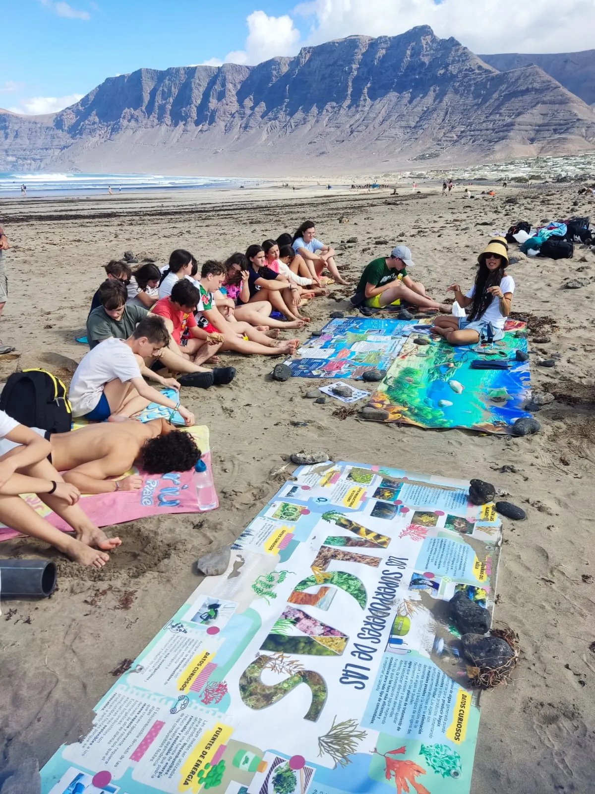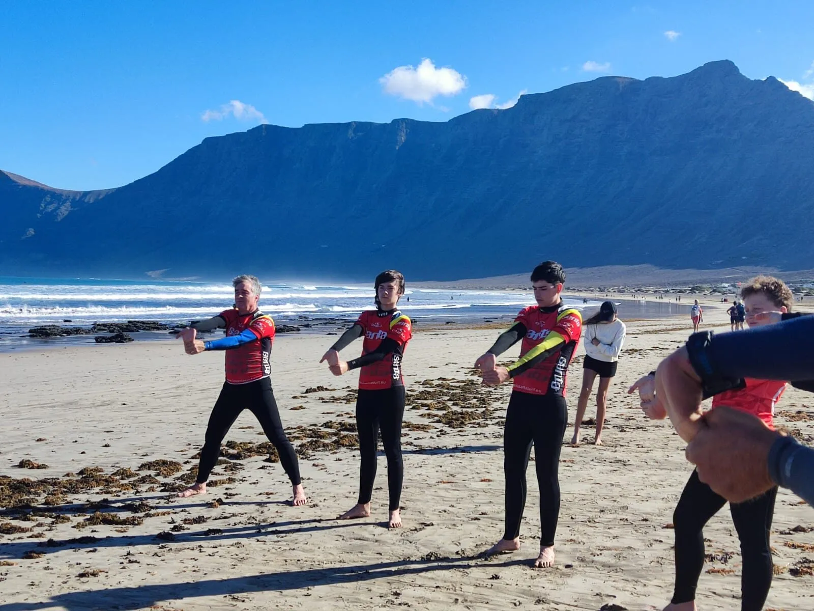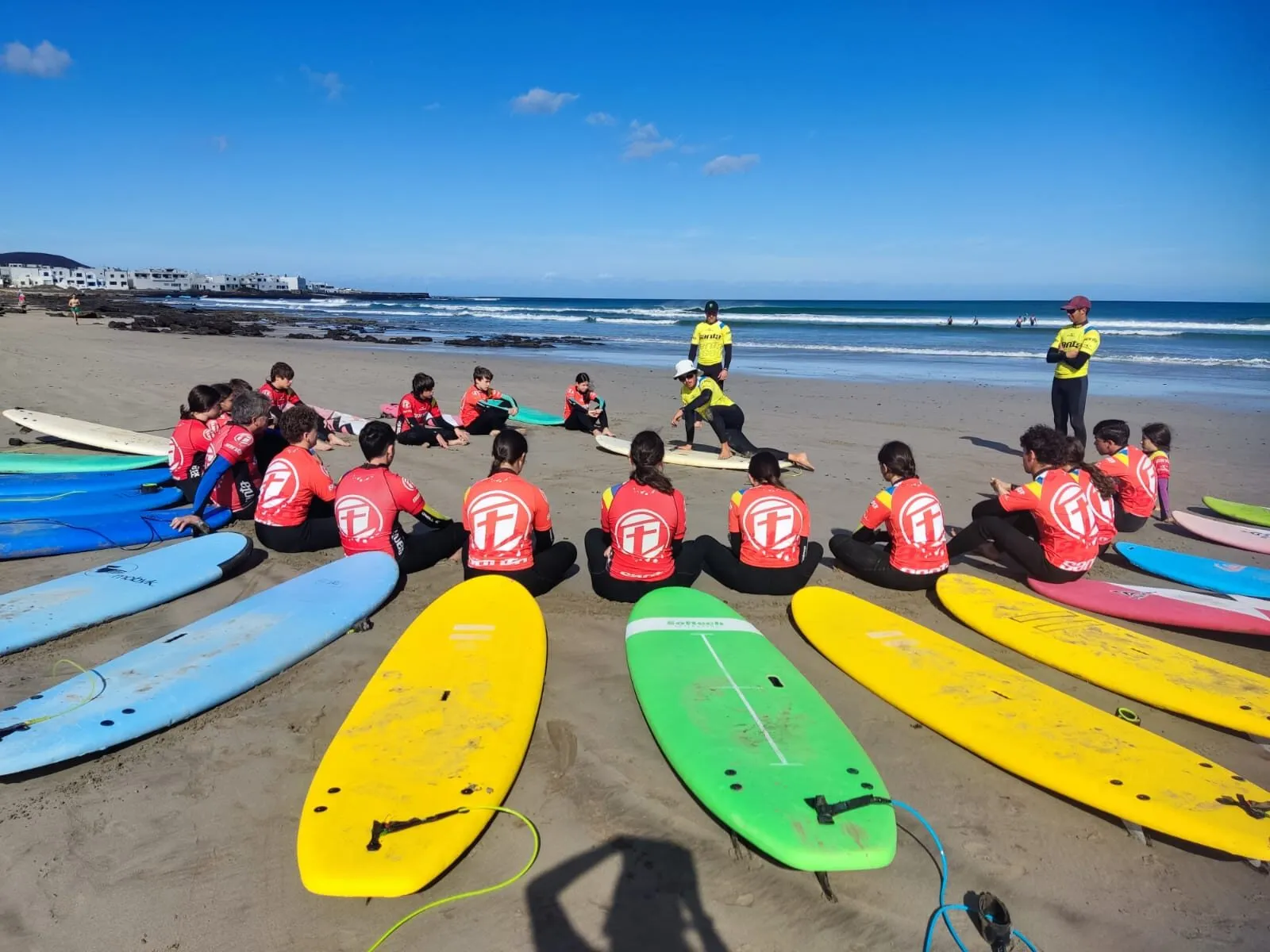 Día 12 de noviembre. Lanzarote Erasmus AGE. Comenzamos la jornada con buen tiempo en la playa de Famara. Clase práctica de iniciación al surf en una zona idílica de Lanzarote. Después del almuerzo nos explican la diversidad de la flora marina autóctona y de la importancia de las algas para la vida. Una bióloga nos enseña el efecto de los micro plásticos y donde los podemos encontrar sin verlos.