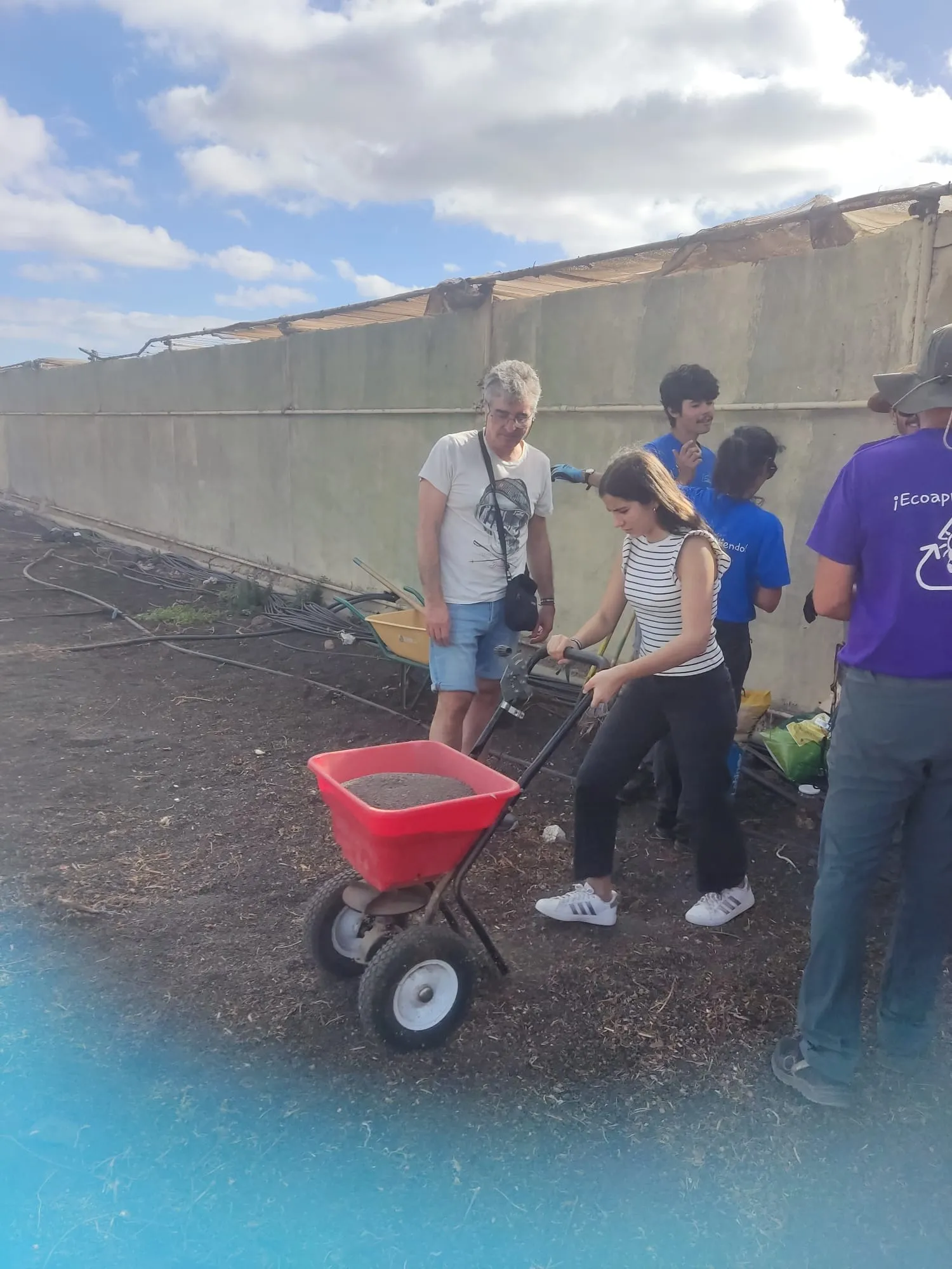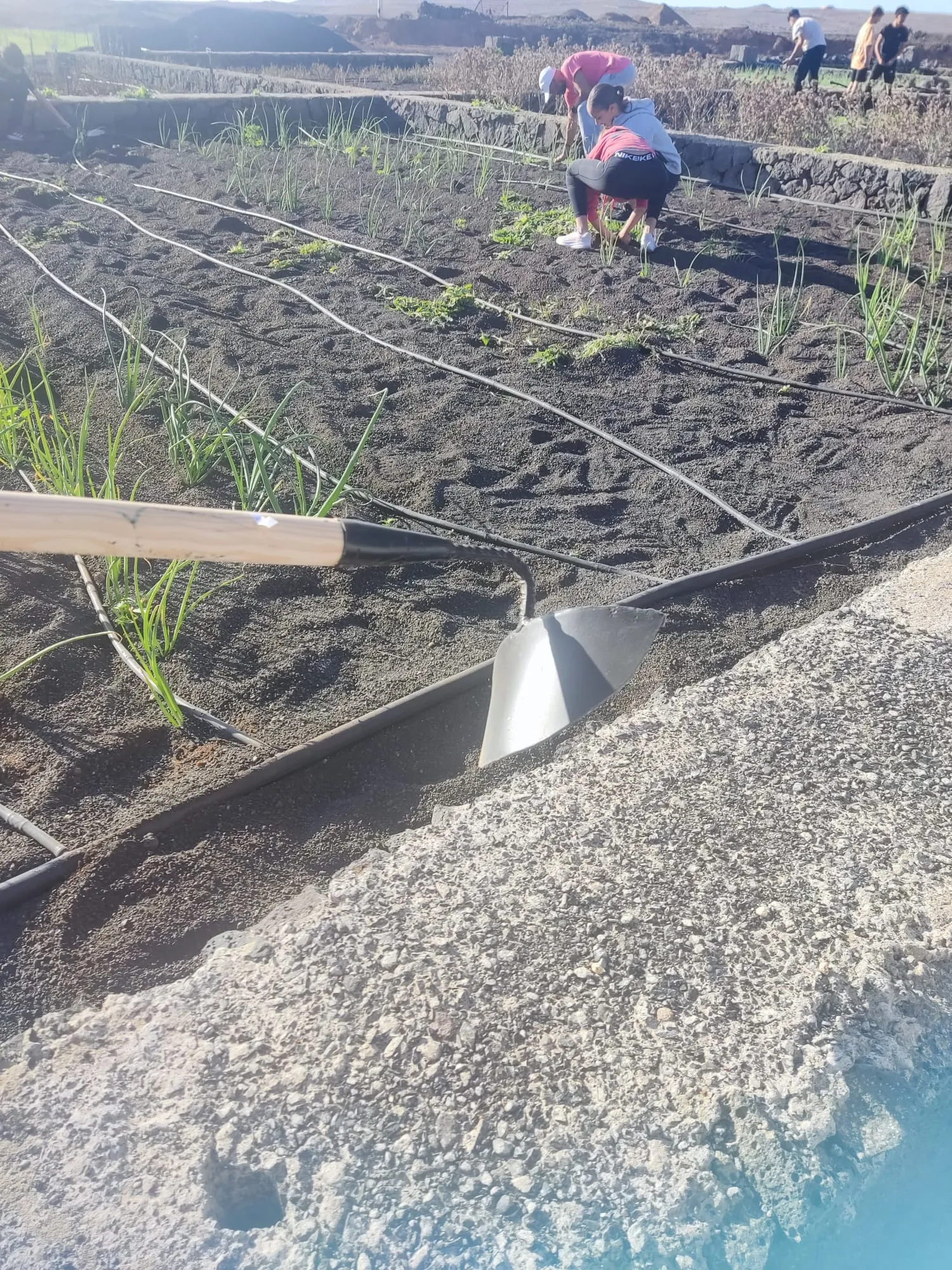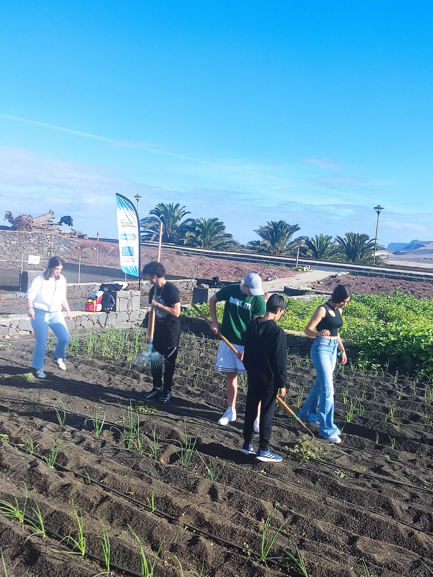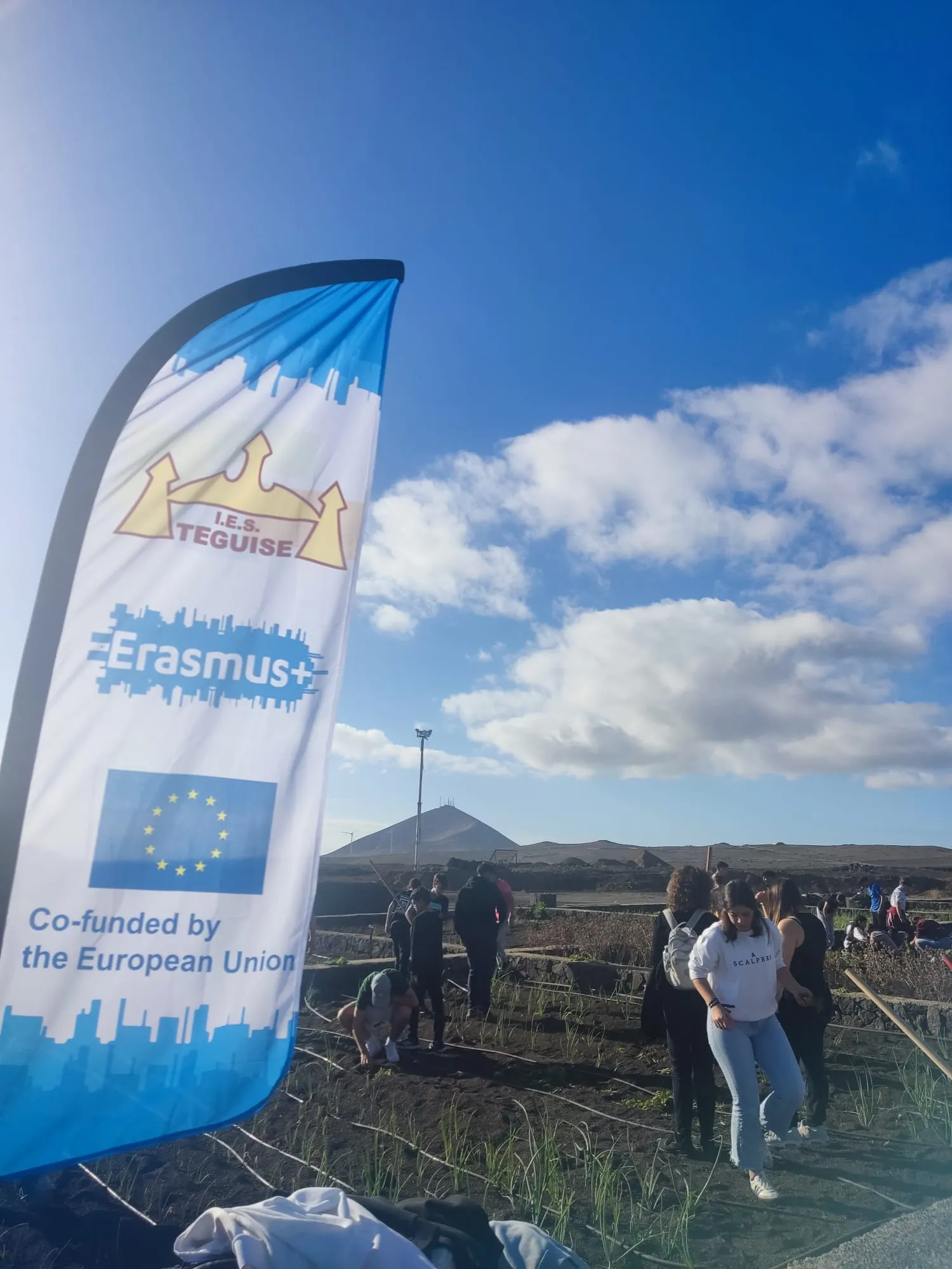 Día 11 de noviembre, Lanzarote Erasmus AGE. Este martes seguimos con nuestro aprendizaje y trabajo sobre el proyecto. Hemos visitado el complejo agroindustrial de Teguise. Primero se han realizado labores de limpieza para luego abonar y plantar las famosas papas que cada noche comemos con mojo verde y rojo.
