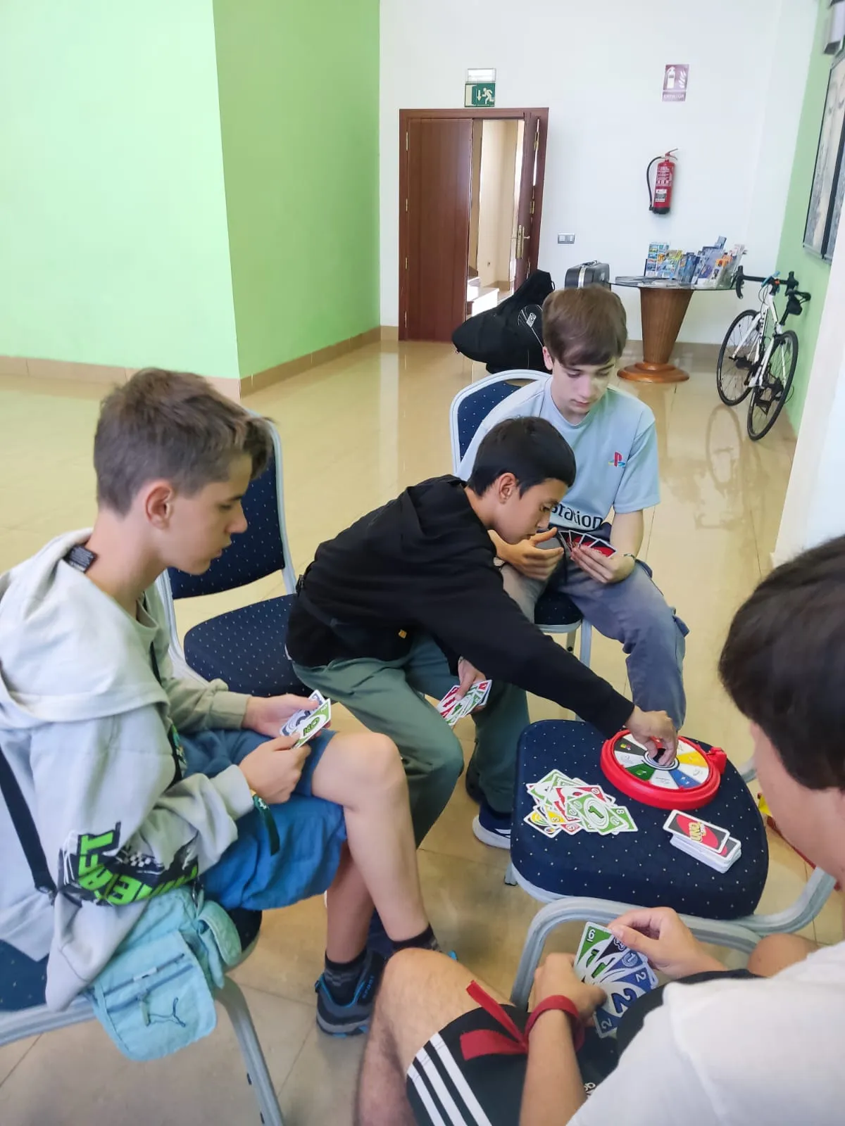 Día 13 de noviembre. Lanzarote, Erasmus. Hoy jueves hemos tenido que quedarnos en el hotel debido al temporal y las recomendaciones de las autoridades. Después de un buen desayuno, juegos con los compañeros griegos y por tríos de trabajo han creado un artículo para subir a eTwinning. A partir de las 14:00 ha remitido el temporal y hemos salido a comer y dar un paseo.