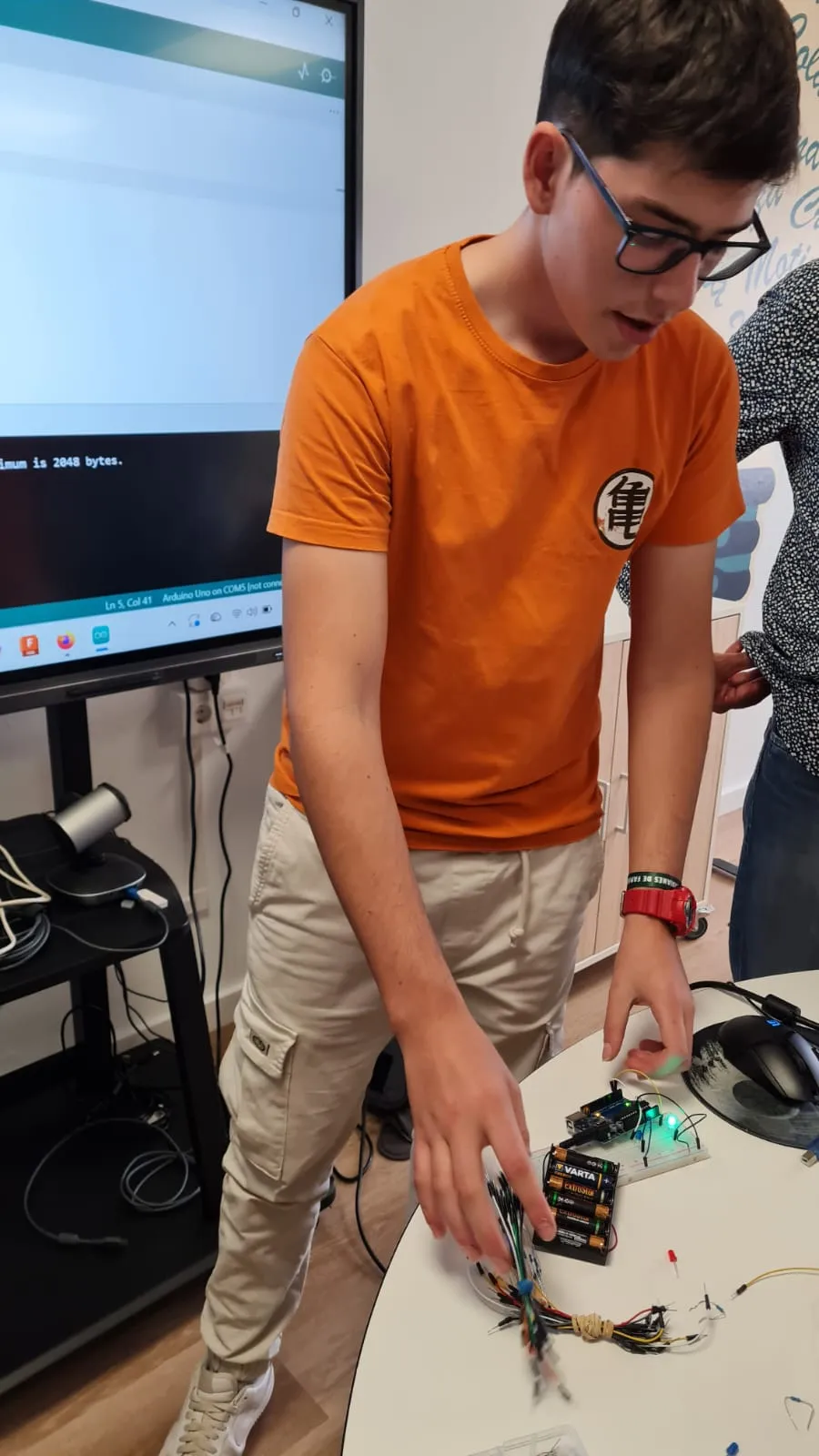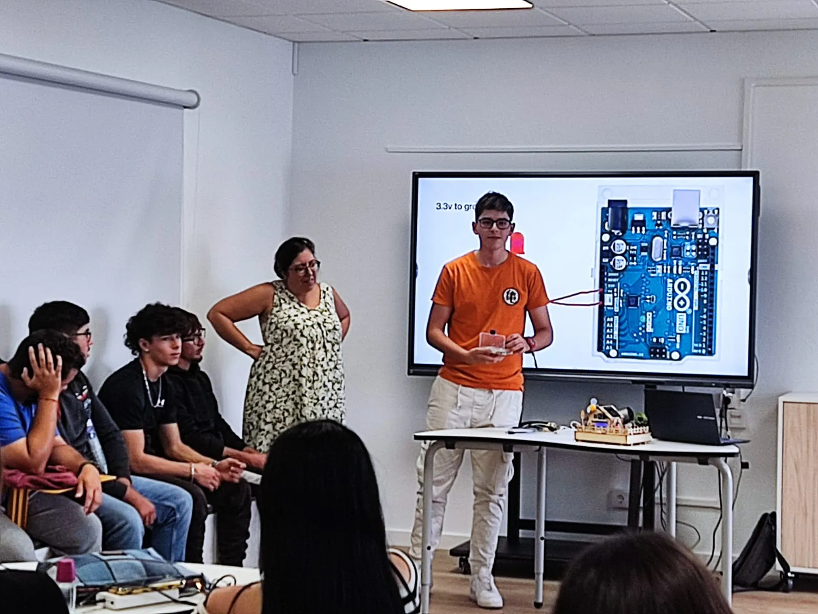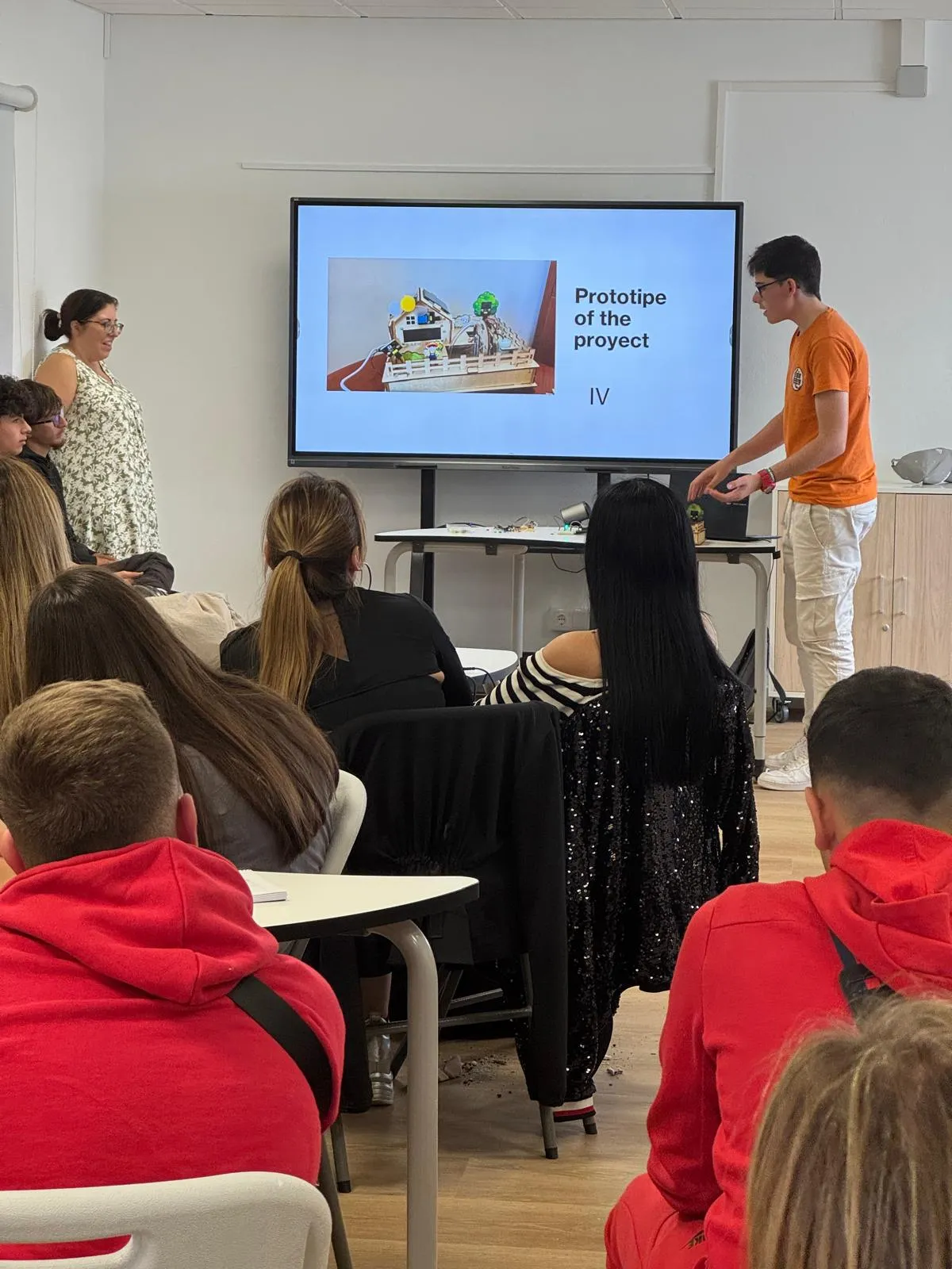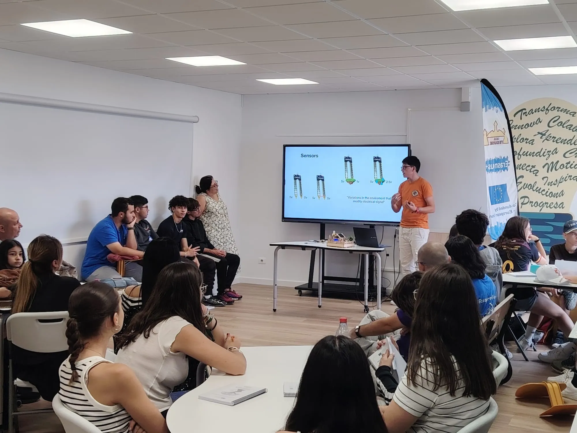 «Arduino and gardens» . El alumno Pablo Rodríguez de 4º eso ha explicado el funcionamiento de este proyecto. Un trabajo de gran calidad en inglés y bien recibido por el resto de participantes. Por la tarde paseo por el centro de Arrecife y encuentro con los compañeros griegos.