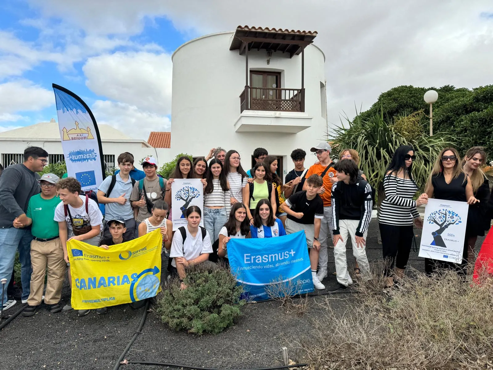 Día 10 de noviembre. Lanzarote. Erasmus AGE. Ceremonia de apertura y bienvenida oficial en el IES Teguise. Cada país integrante ha plantado un árbol y el colegio AGE ha realizado una exposición de