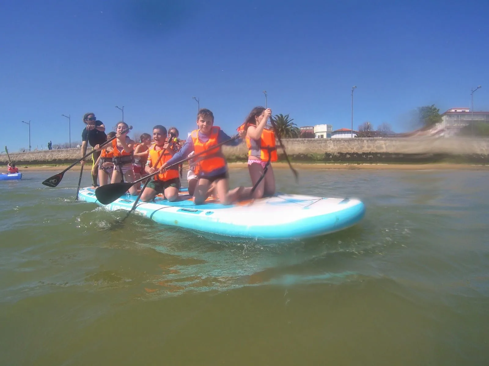 Por la tarde hemos disfrutado con el kayak y el Big padel surf en la ría. Toda una experiencia. Y después del baño, vuelta al albergue, donde nos esperaba una reconfortante ducha.