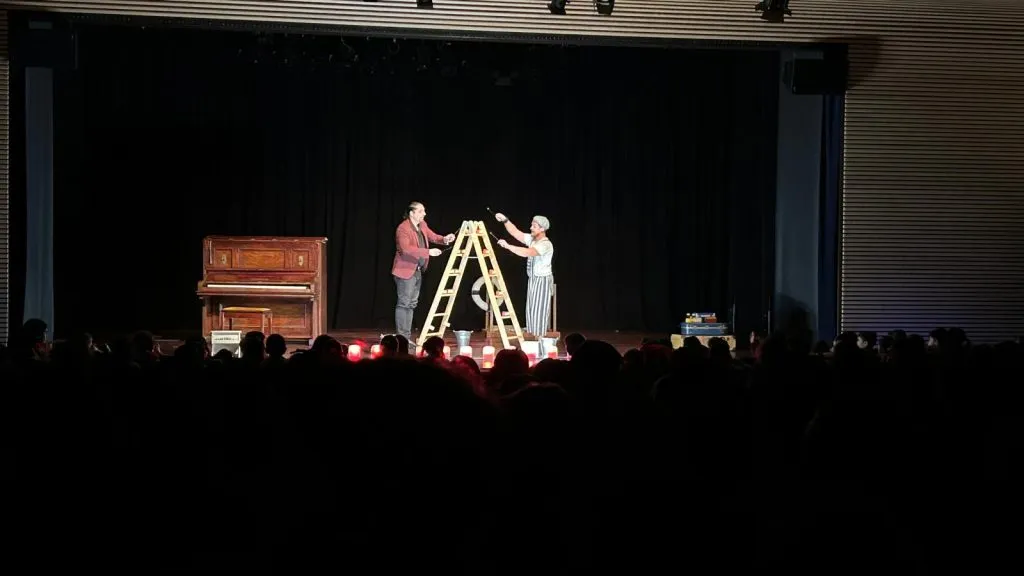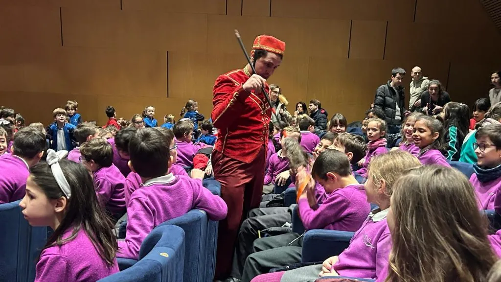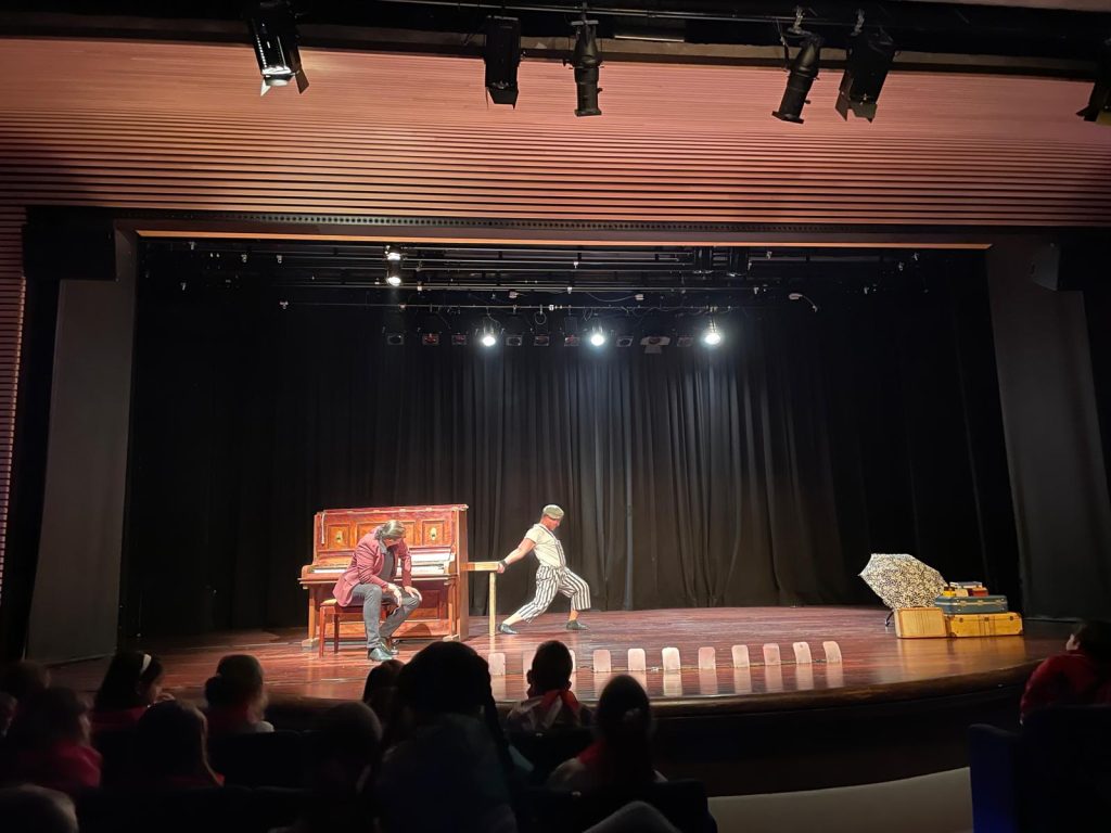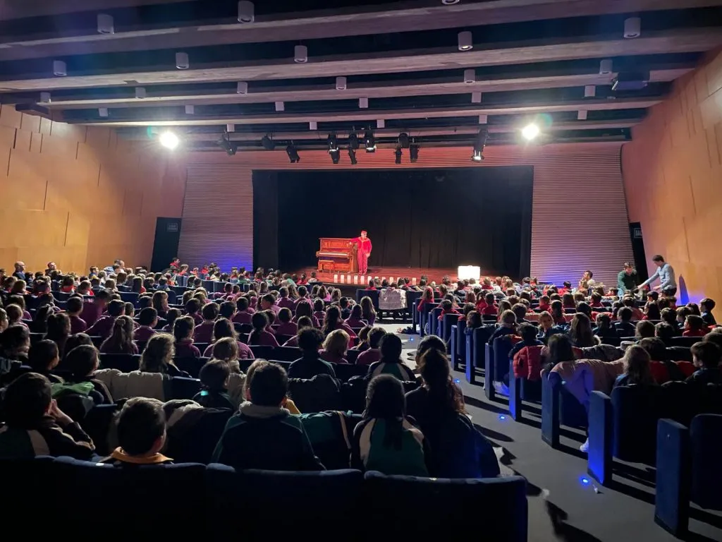 Los alumnos de 1º, 2º y 3º de primaria hemos acudido a ver un concierto de piano en el que actuaba otra persona haciendo clown. Ha sido muy divertido ver cómo se iba moviendo al ritmo de la música e iba intentando tocar el piano a medida que avanzaba la representación.