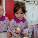 Han disfrutado mucho, y han experimentado desde el placer de manipular la harina, hasta el asco que les daba que se les pegase en los dedos, y cómo no, el gusto por comerse un trozo de pizza casera para almorzar.