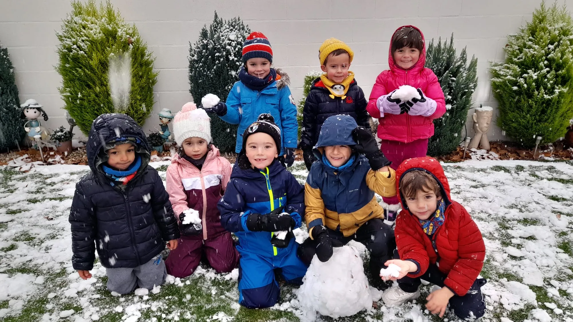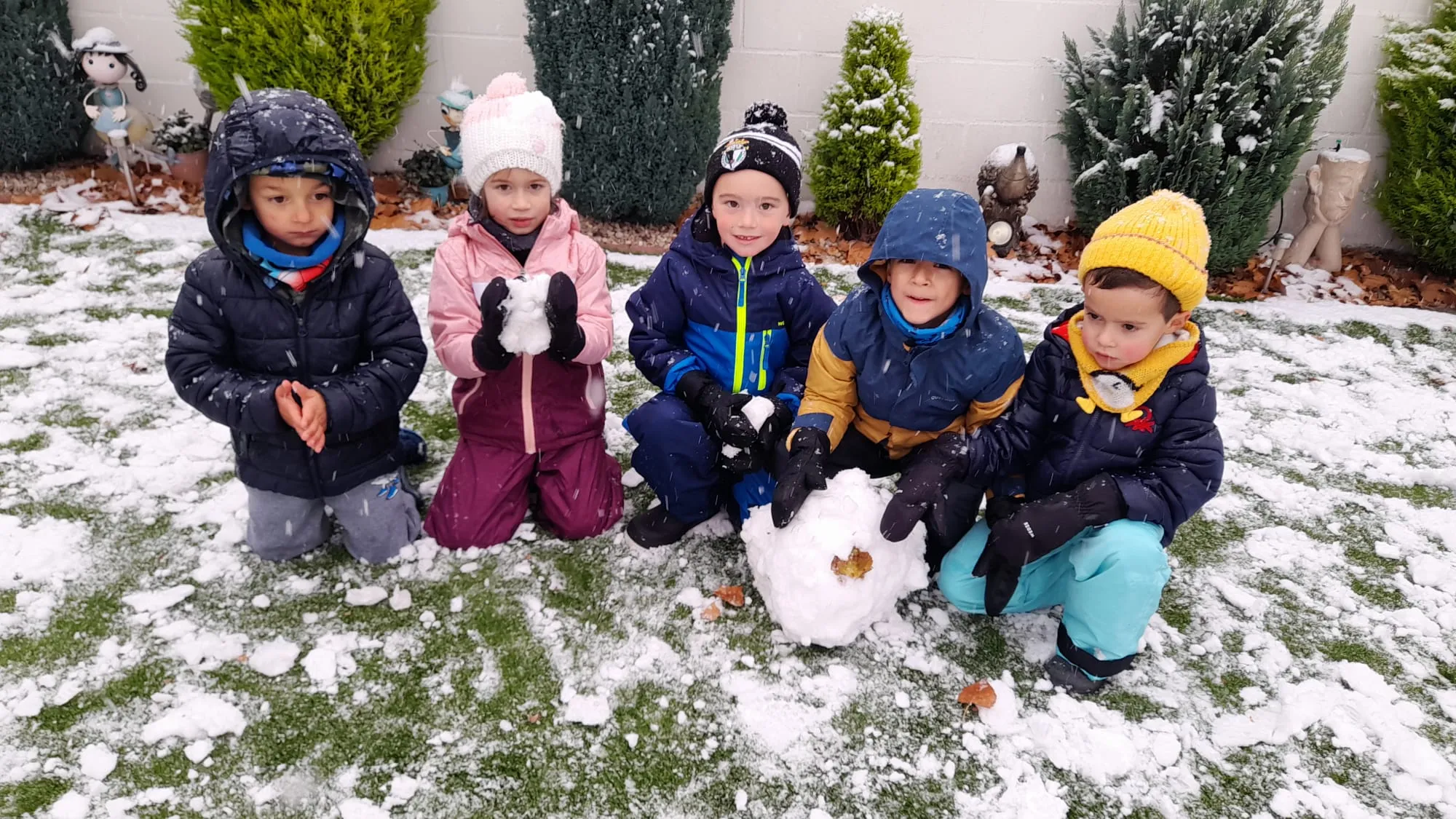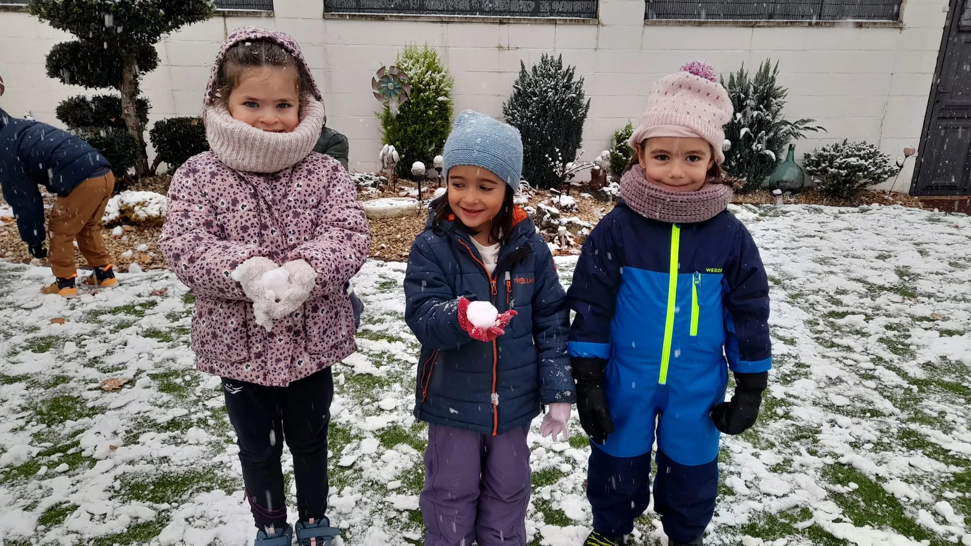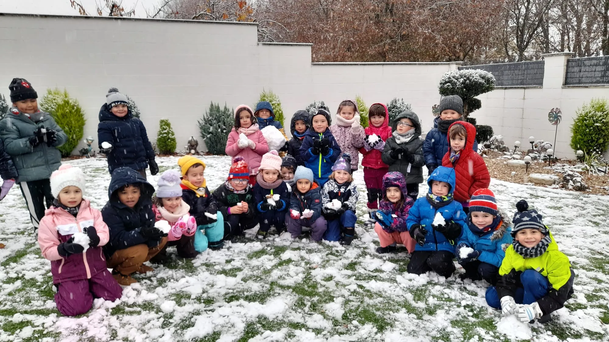 Los peques de 3° de Educación Infantil, bien abrigaditos, hemos aprovechado la nieve caída para jugar, hacer bolas y hacer un bonito muñeco de nieve entre todos.