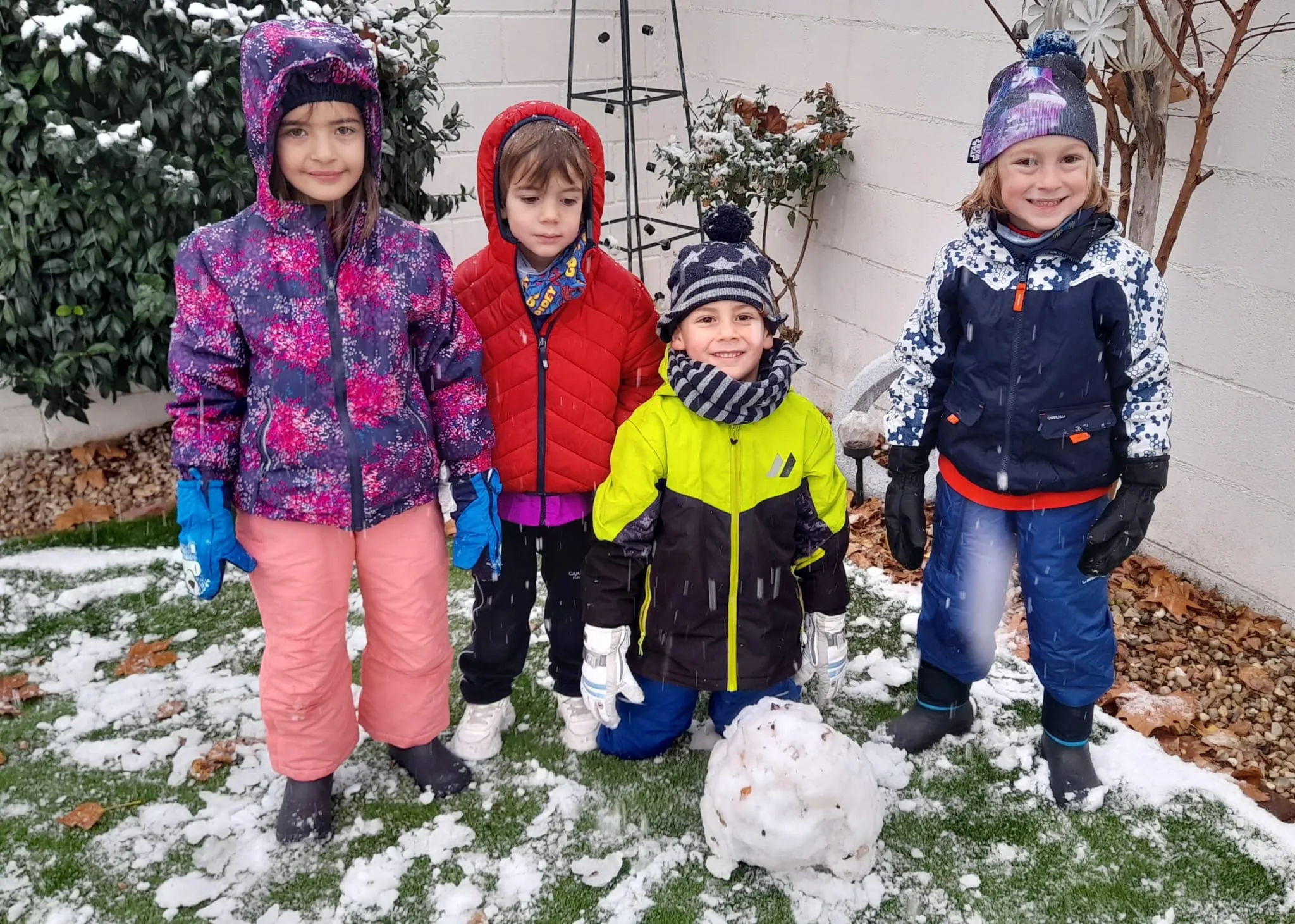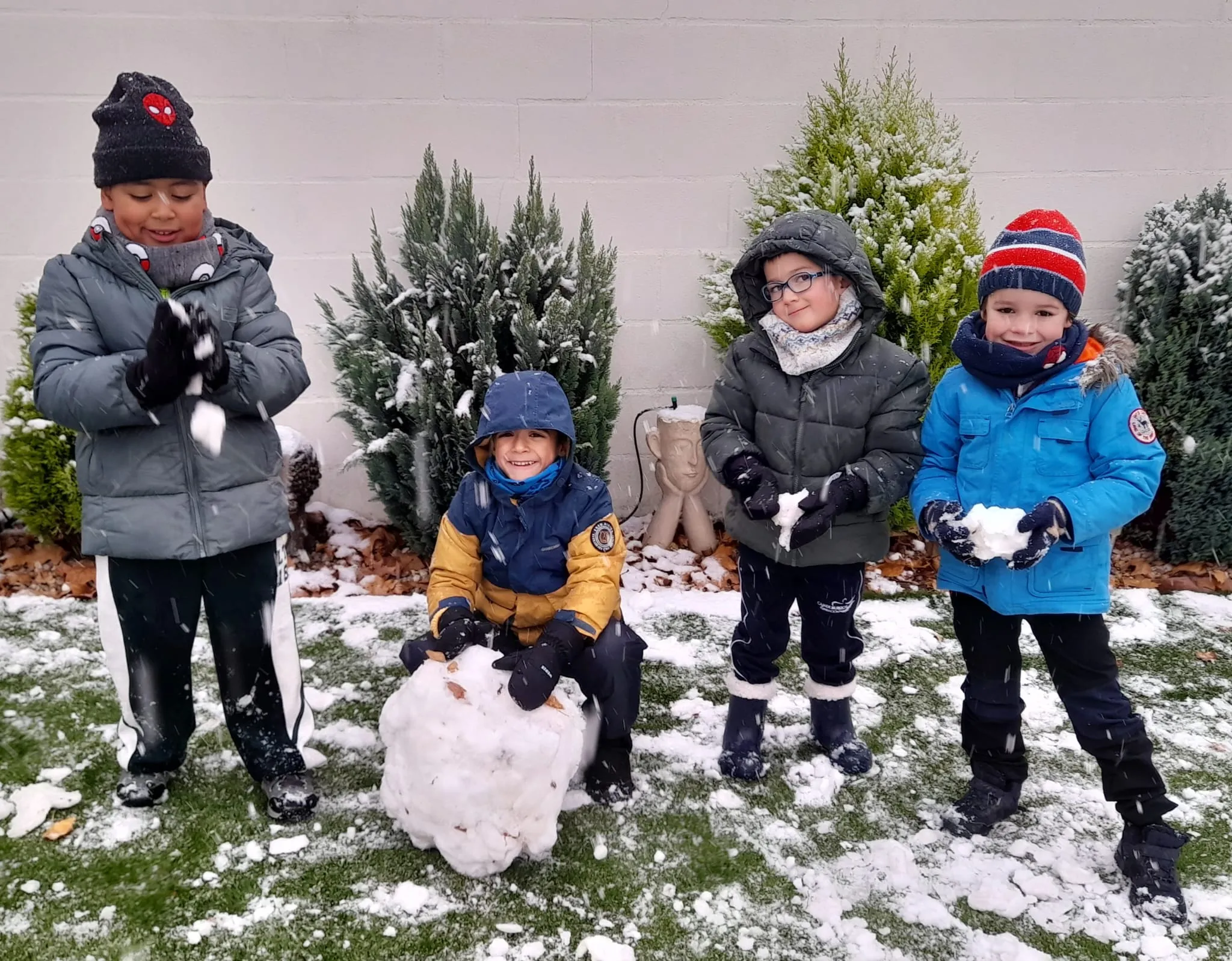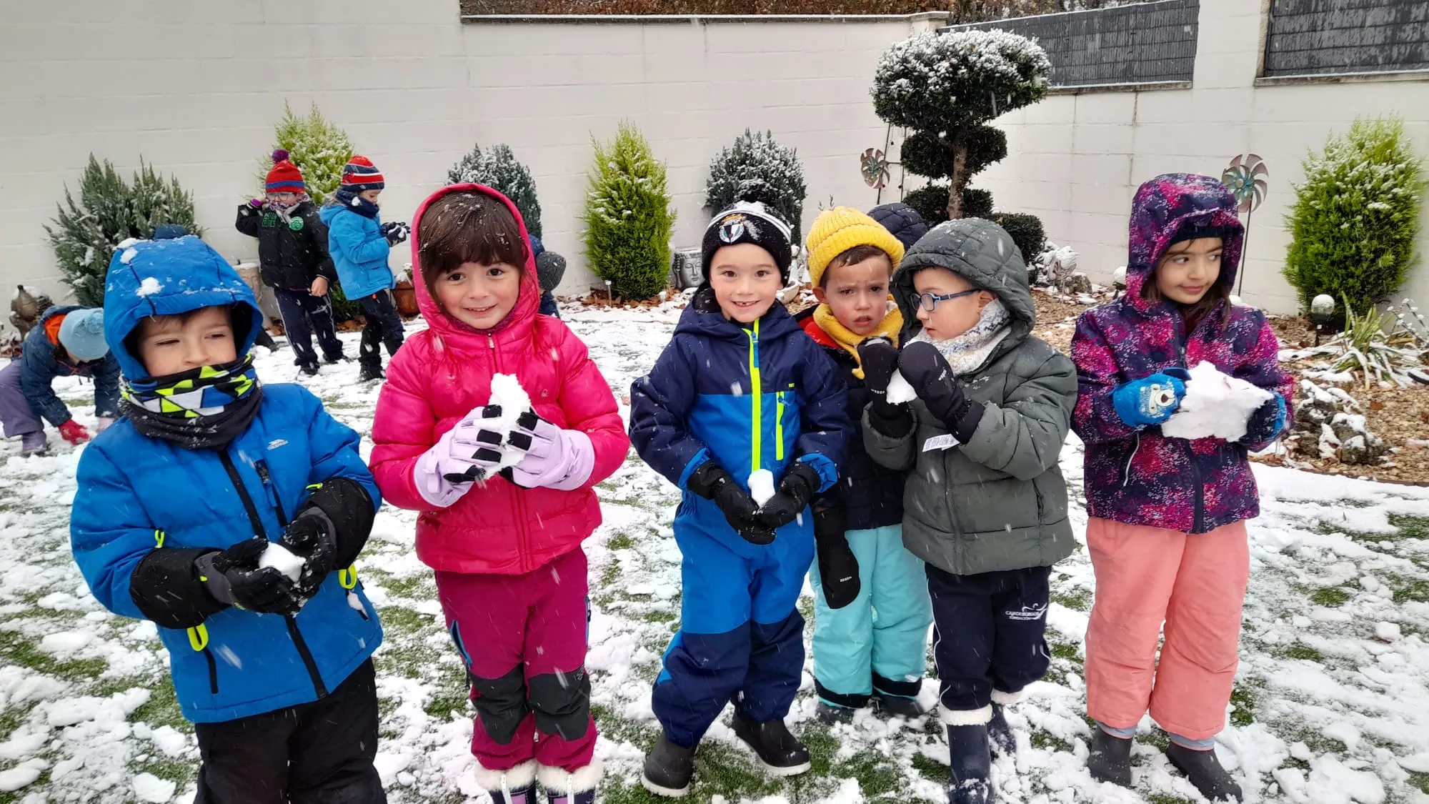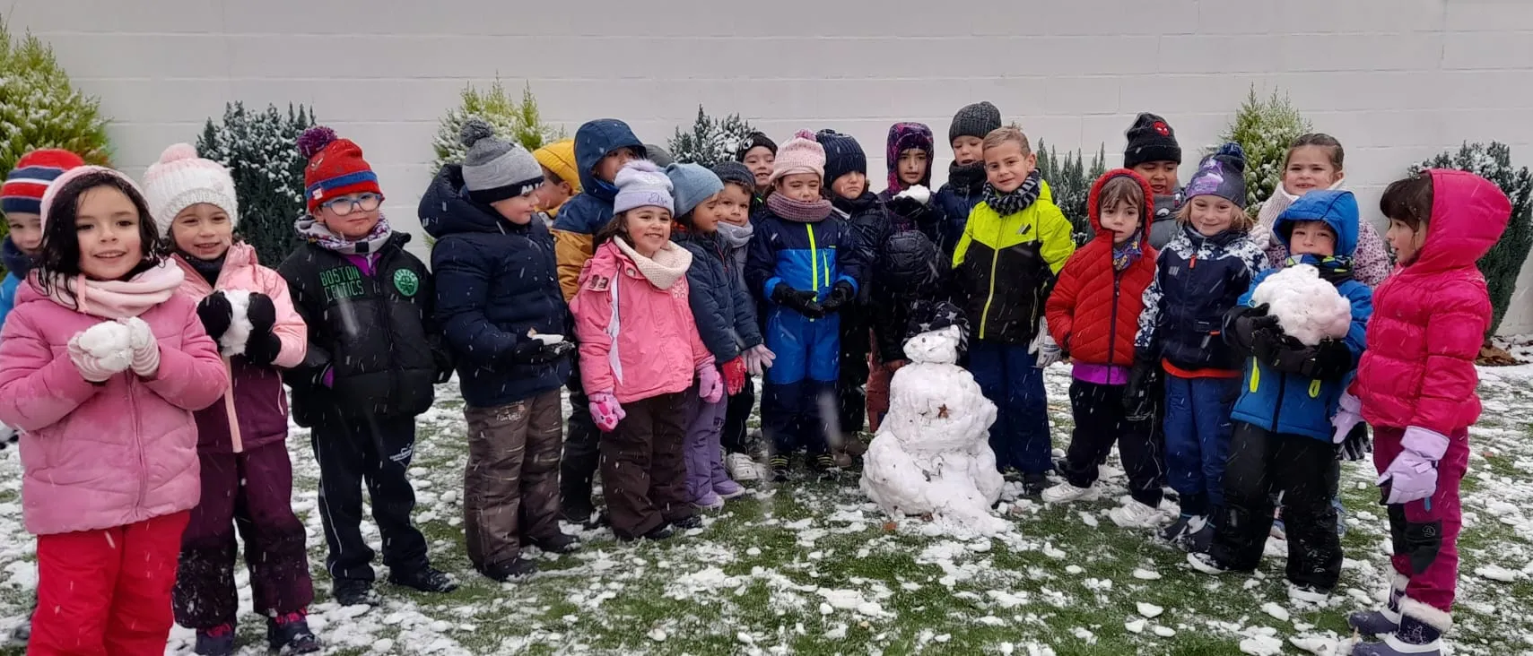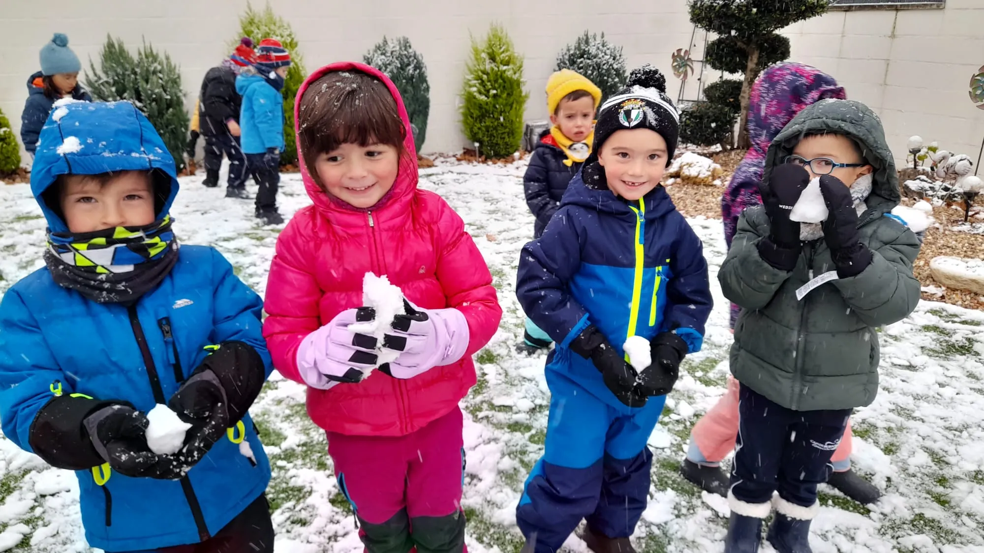 Los peques de 3° de Educación Infantil, bien abrigaditos, hemos aprovechado la nieve caída para jugar, hacer bolas y hacer un bonito muñeco de nieve entre todos.