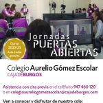 Desde Fundación Caja de Burgos y, más concretamente desde el Colegio Aurelio Gómez Escolar, os invitamos a visitarnos durante la Jornada de Puerta Abiertas que tendrá lugar en nuestro centro los días 5 de marzo (de 11:30 a 13:30) y 11 de marzo (de 16:30 a 18:30).