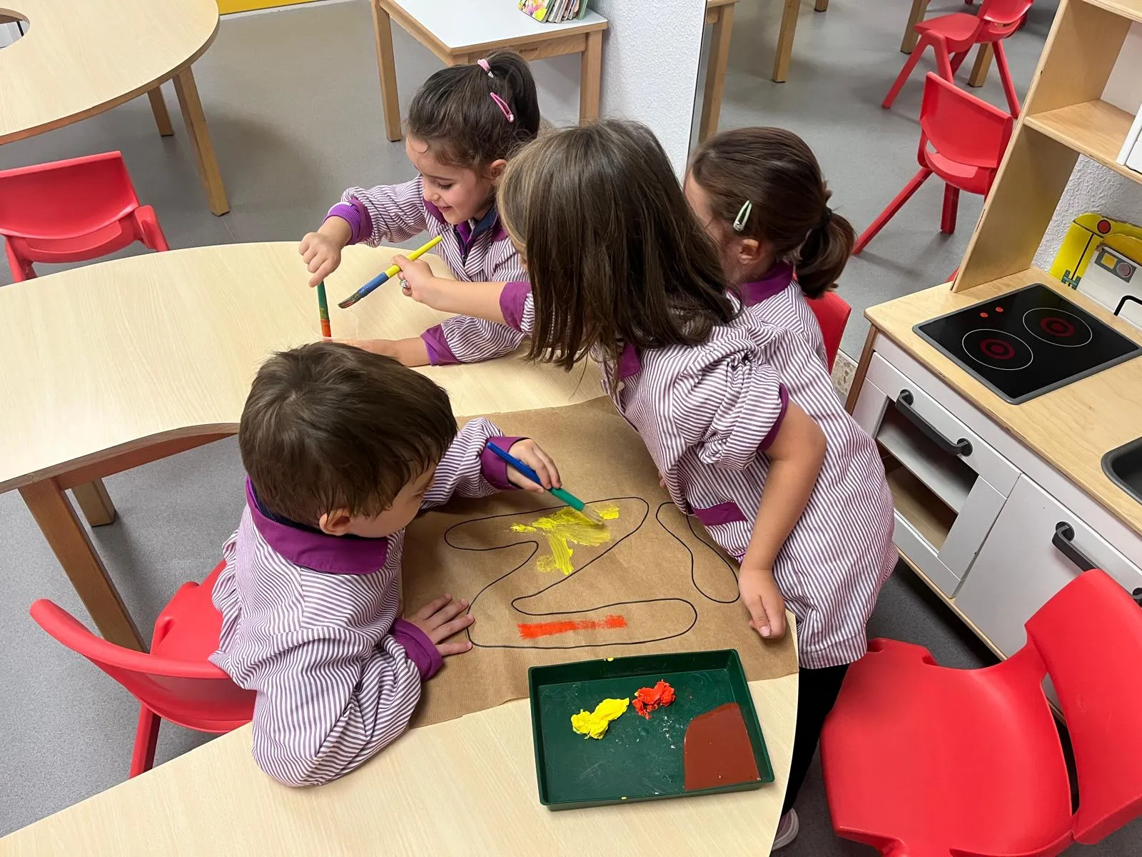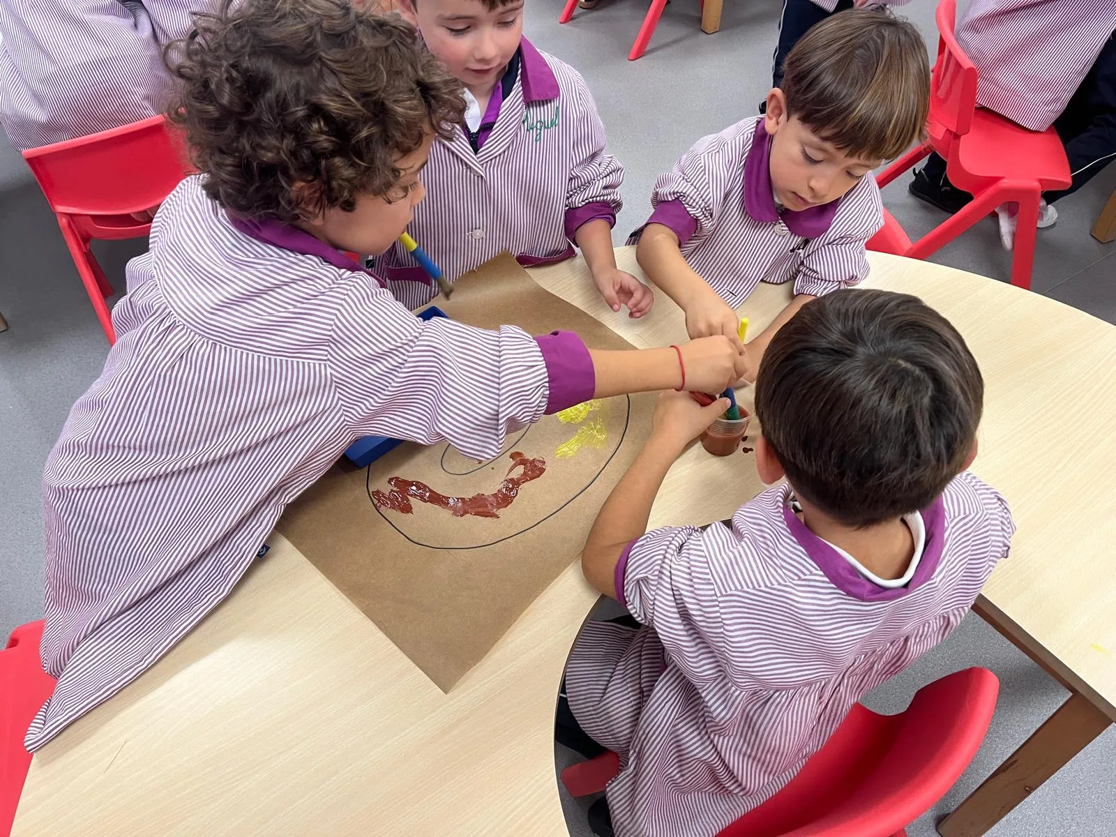¡¡Llegó el otoño a nuestra ciudad!! Y por ello, los niños de 2º de Educación Infantil hemos pintado un título precioso para decorar nuestros pasillos. Pero, como este año el lema del colegio hace alusión al trabajo en equipo, hemos trabajado en pequeños grupos. ¡Ha sido una experiencia maravillosa!