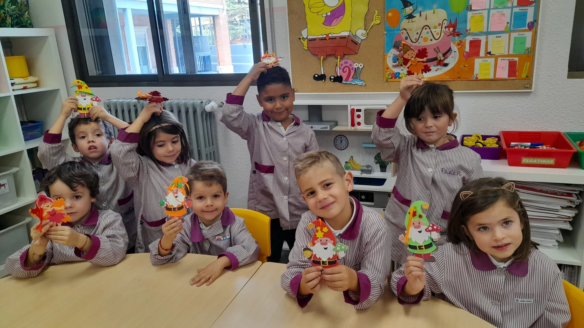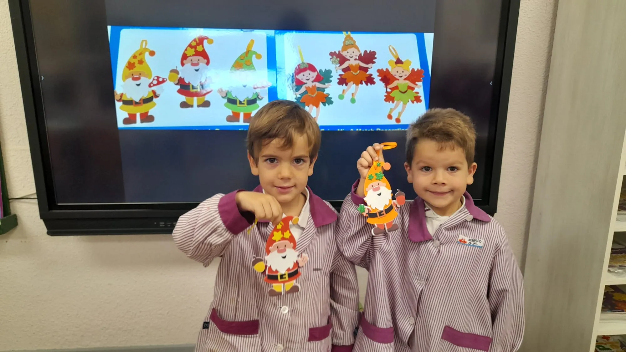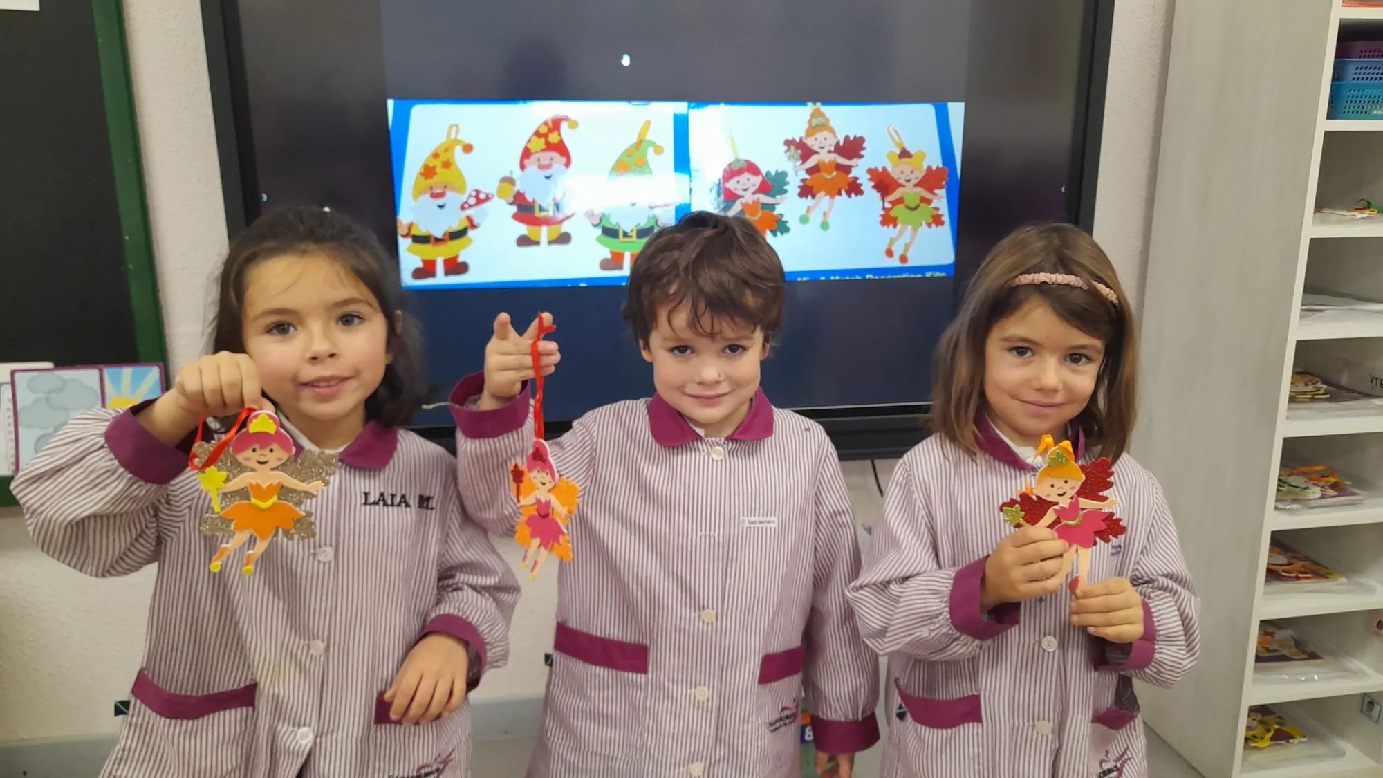 Los niños y niñas de 3° de Educación Infantil hemos realizado un taller de hadas y duendes de otoño. Con la ayuda de Paloma y muchísimos papás y mamás los hemos hecho con mucho cuidado llenando la clase de pequeños y coloridos duendes y de preciosas y delicadas hadas. Nos ha encantado y como no, hemos aprovechado para contar a los papás y mamás todo lo que hemos aprendido del otoño. Para terminar todos juntos hemos cantado y bailado bonitas canciones sobre el otoño.