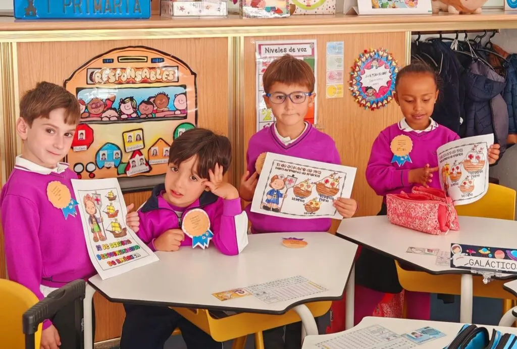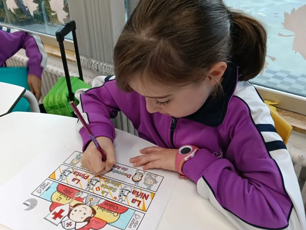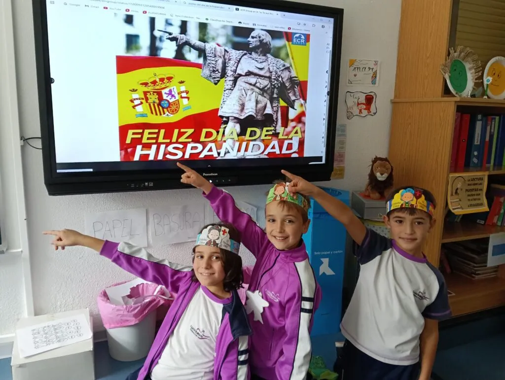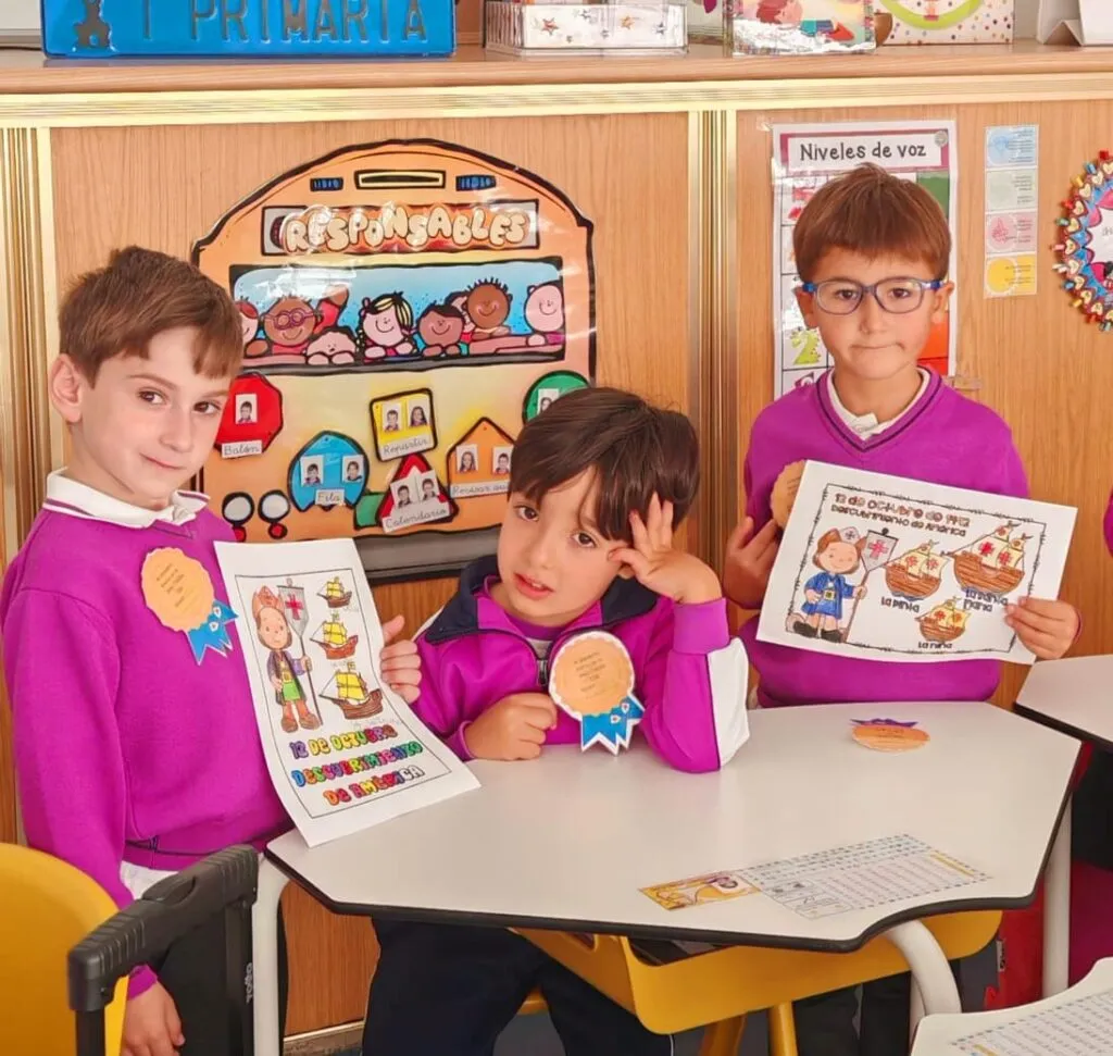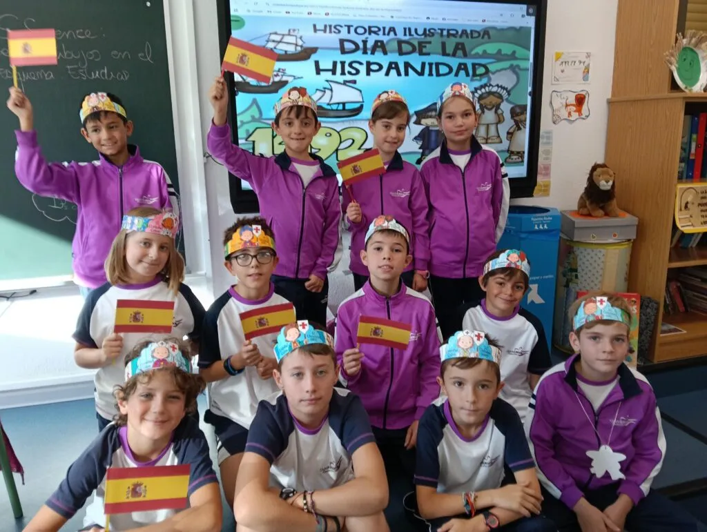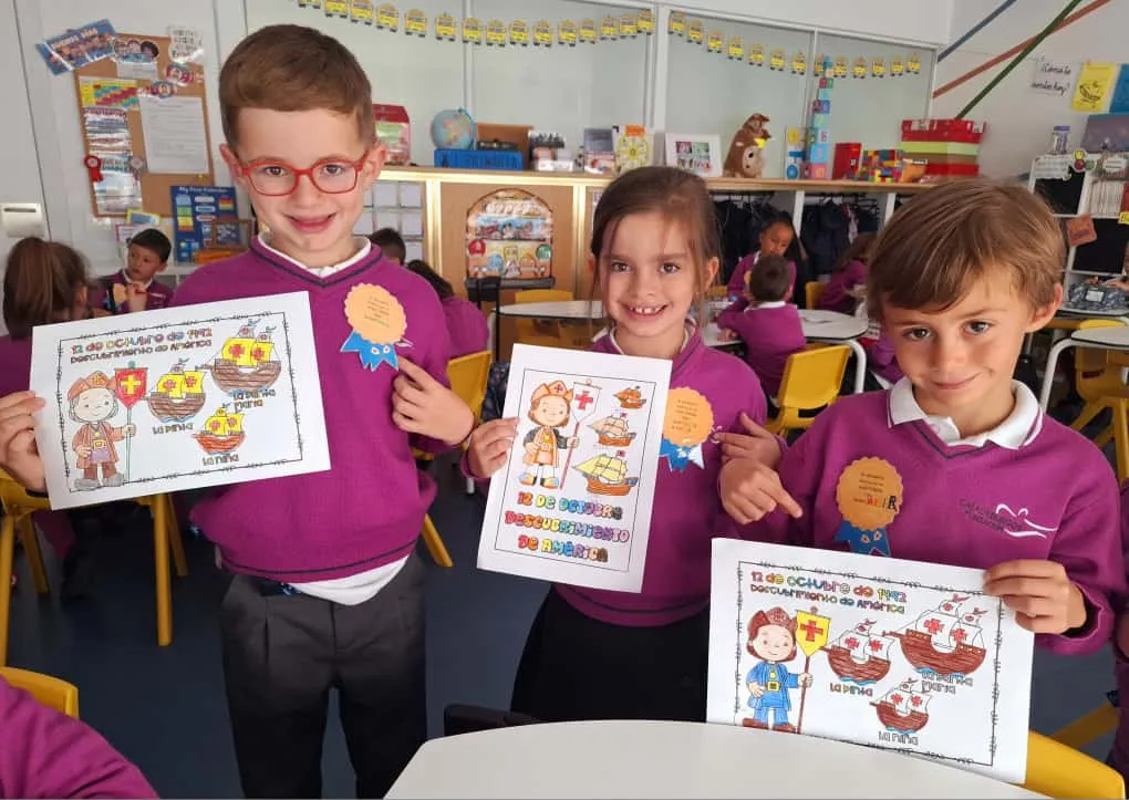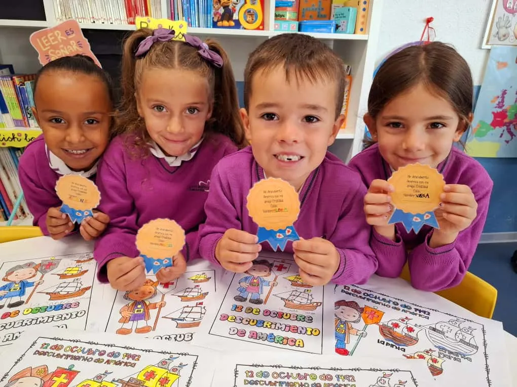 Con motivo de la celebración del Día de la Hispanidad, los alumnos de primaria han participado en diversas actividades para conocer y comprender mejor la historia del descubrimiento de América por Cristóbal Colón. Durante la semana, los niños han leído cuentos y textos informativos, aprendido canciones, realizado actividades interactivas, visto vídeos educativos y aprendido canciones relacionadas con este importante acontecimiento histórico. Además, han desarrollado su creatividad realizando dibujos y coloridas coronas decoradas con elementos que representan los barcos, los personajes y los momentos más destacados del viaje de Colón. ¡Los más pequeños de Primaria lo han hecho tan bien que han conseguido una medalla de descubridores!