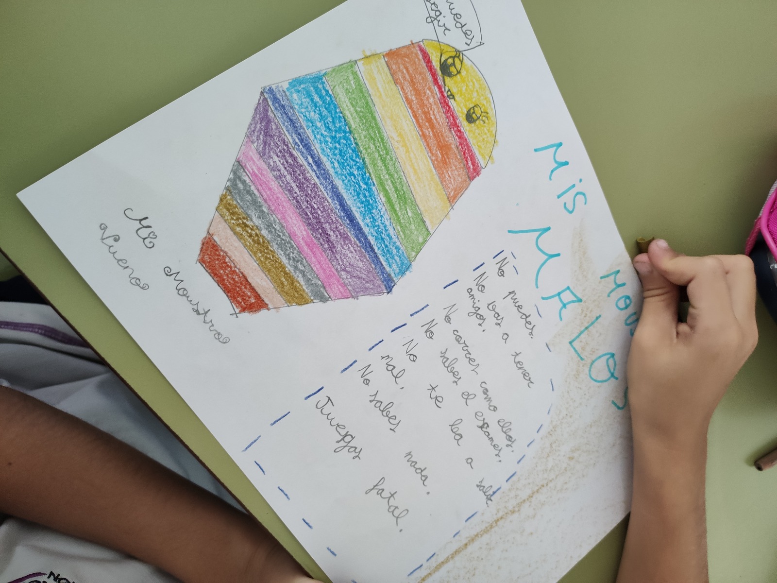 Con la lectura y reflexión del cuento “Mamá, hay un monstruo en mi cabeza” de Gabriel y Adrián, nuestros alumnos de 3ºEP han identificado sus pensamientos negativos poniéndoles nombre y cara de monstruo. Todo ello para darse cuenta de lo importante que es quitar peso a esos pensamientos que no ayudan, y enfocarse solo en los positivos, los que nos animan a seguir mejorando. ¡Un cuento muy recomendable para todos!