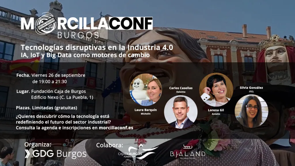 El viernes, 26 de septiembre, arranca Morcilla Conf – el evento tecnológico con mayor repercusión de Burgos- en el edificio Nexo de Fundación Caja de Burgos. Un grupo de expertos compartirá sus experiencias en la implementación de tecnologías disruptivas en el sector industrial . La entrada es libre hasta agotar aforo; se requiere inscripción